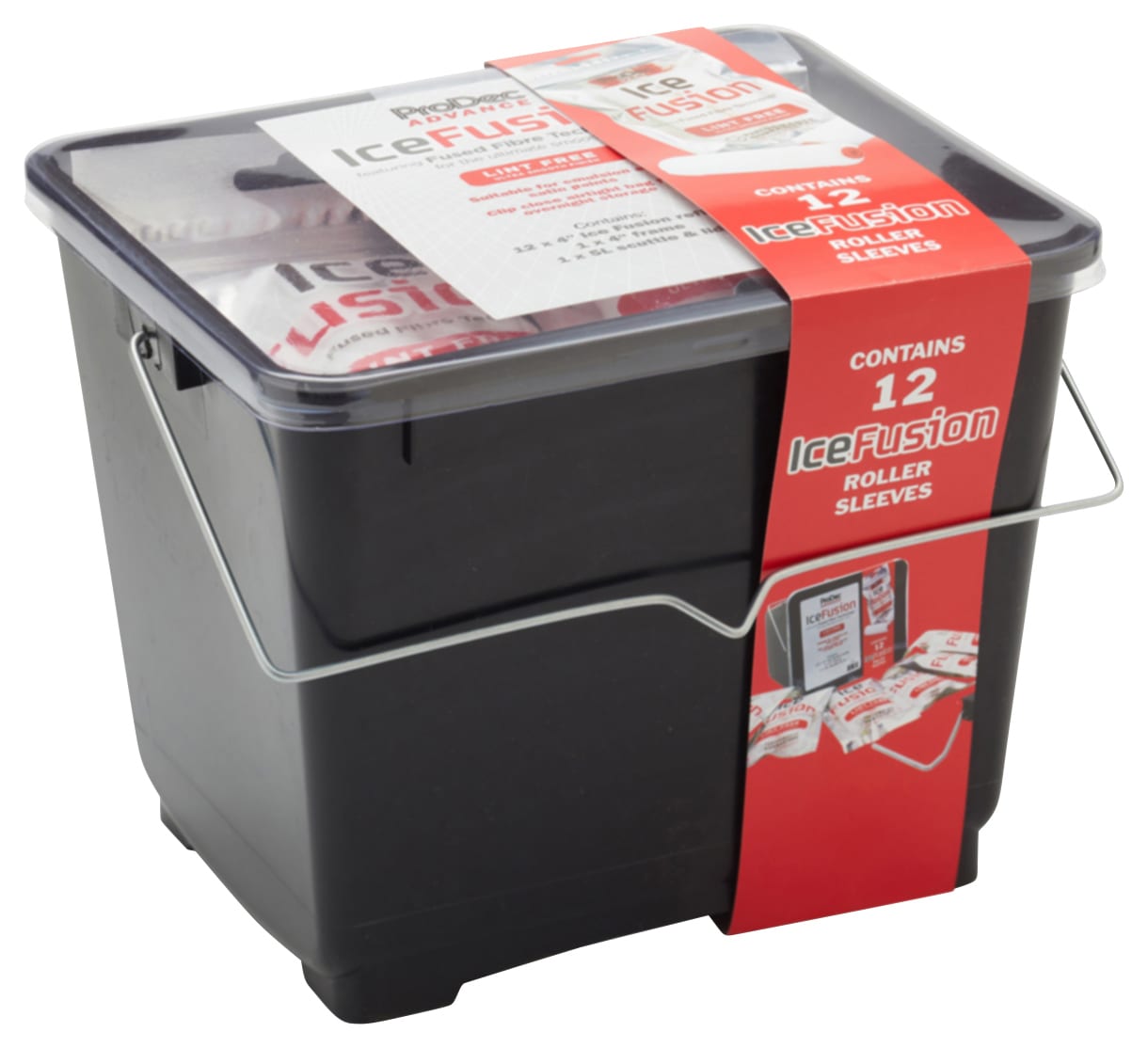 The ProDec Ice Fusion Mini Roller and Scuttle Kit features their unique fused fibre technology, engineered to recover their shape during use and after washing for an impressively smooth finish time after time. This kit provides 12 mini rollers, a 4in frame and a 5L scuttle with lid.