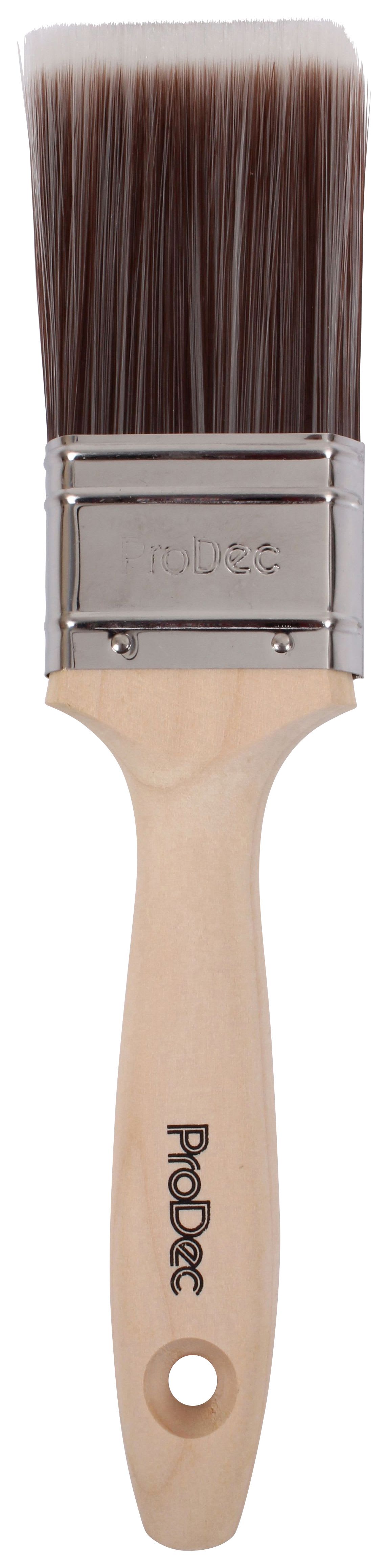 A ProDec Permier paint and varnish brush which has high quality bristles for even paint application, making it perfect for use with emulsion and water-based gloss or satin paints.