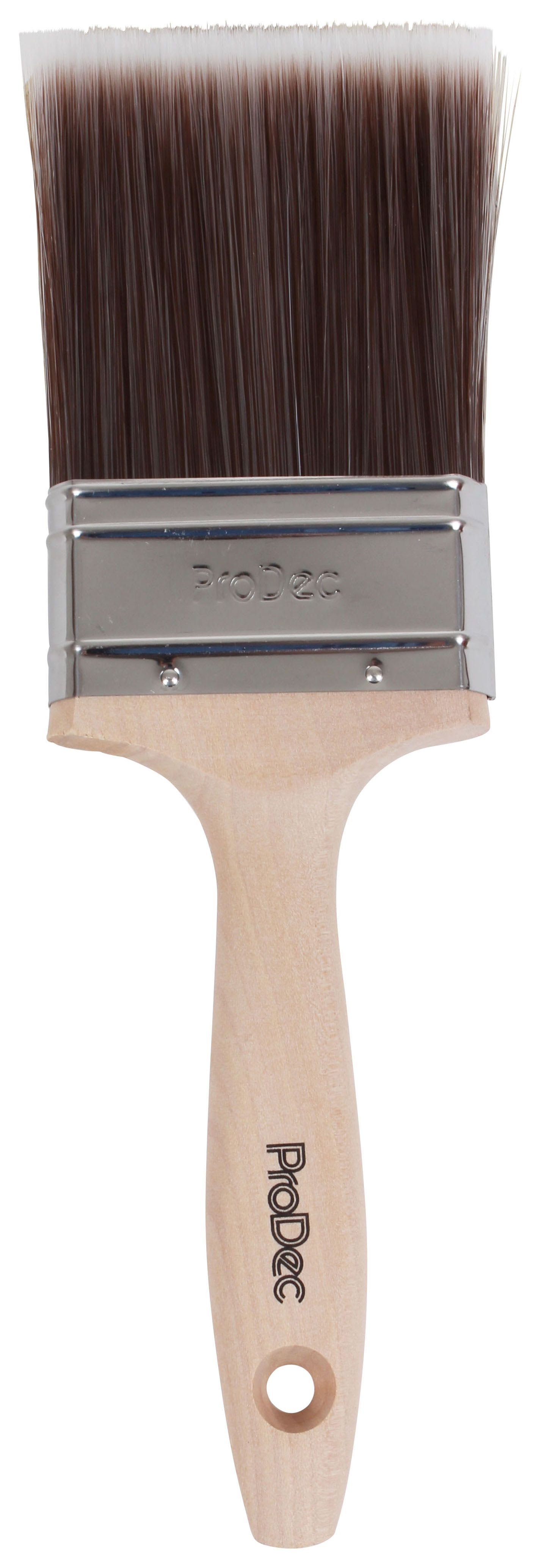 A ProDec Permier paint and varnish brush which has high quality bristles for even paint application, making it perfect for use with emulsion and water-based gloss or satin paints.