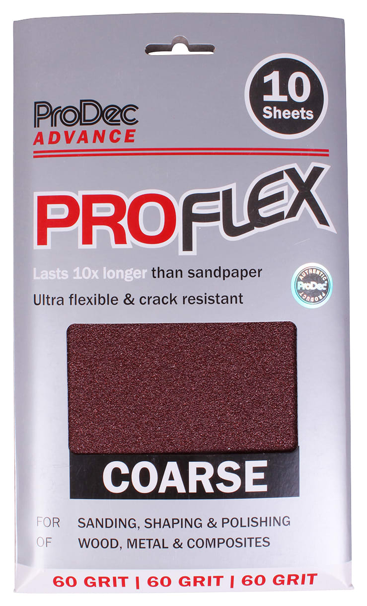 The ProFlex Half Size Coarse Sandpaper is the abrasive of choice being suited to the widest variety of uses. ProFlex takes it to the next level by replacing the standard backing paper with an ultra-flexible, crack-resistant cotton cloth so giving outstanding performance with curved and profiled surfaces by moulding effortlessly to match their shape for fast, efficient sanding.