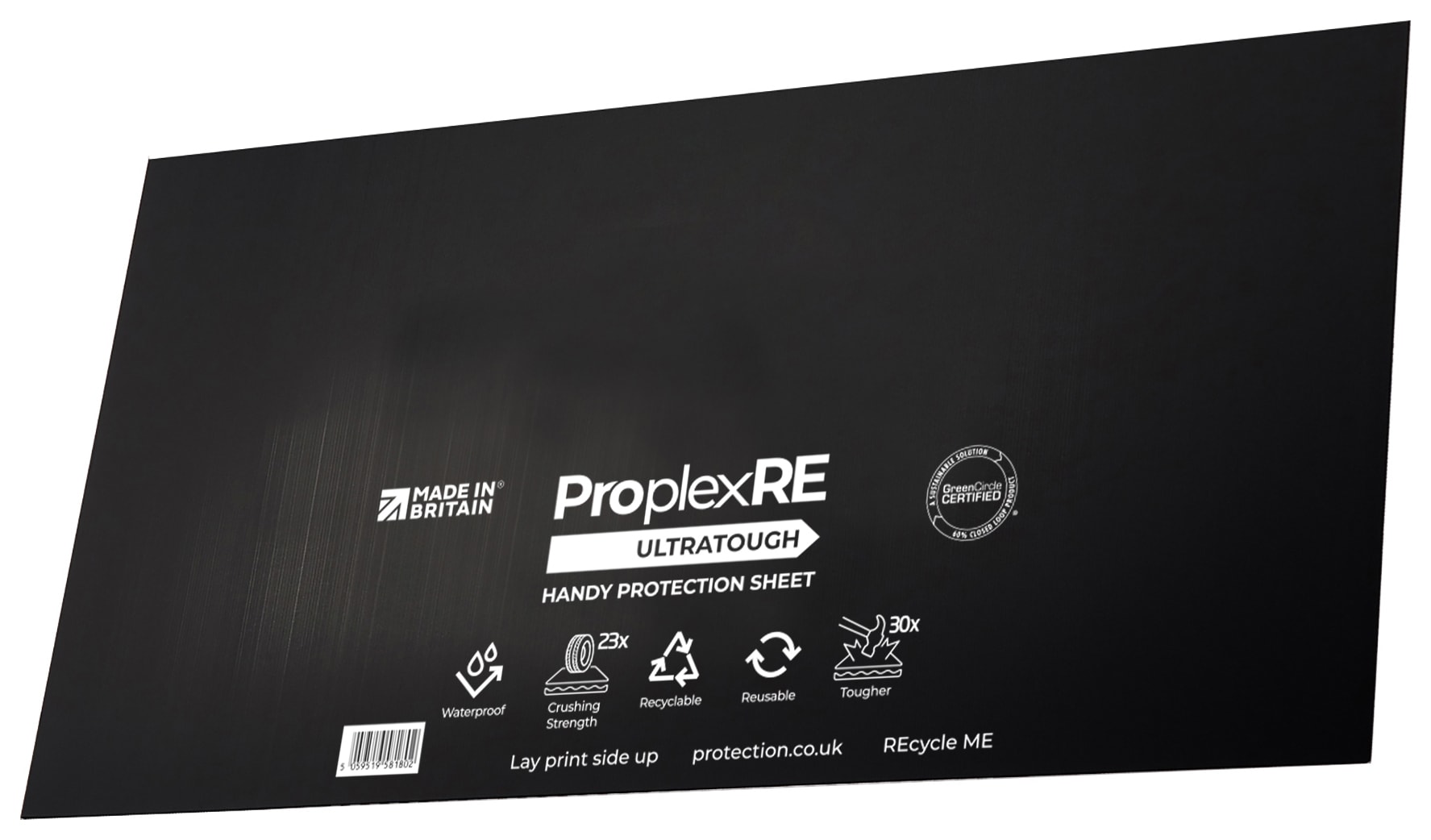 Looking for an ultratough surface protection for your site or project? Protec ProplexRE® ULTRATOUGH Handy Surface Protection Sheets offer up to 30 times more impact protection and up to 23 times the crushing strength compared to our standard surface sheets. Measuring a convenient 1200 x 600mm, these sheets are easy to handle and move around, making your job easier. These sheets are incredibly durable, designed to withstand increased powered plant, pump trucks, vehicles and high foot traffic. Made from O profile twin-wall polypropylene, similar to CORREX®. Proudly manufactured in Sheffield, our ProplexRE® sheets carry the Made in Britain™ trademark, ensuring high quality and locally manufactured products. Choose ProplexRE® for durable, and easy-to-use protection solution for your next project.