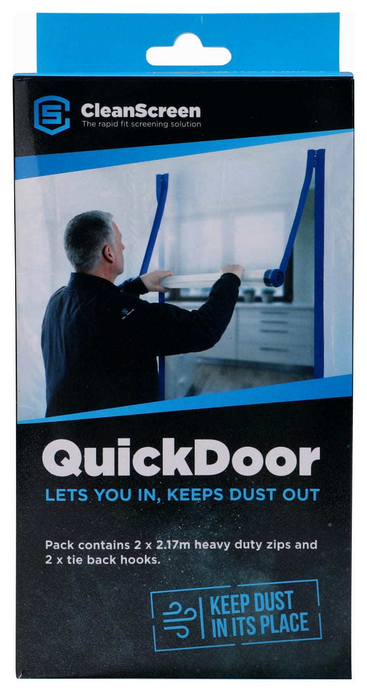 The Protec CleanScreen QuickDoor Zip Kit is the quick and effortless way to create a door that keeps dust in its place. Used with CleanScreen system products, simply position the self-adhesive zips, cut the polythene to fit, and the dustproof QuickDoor is ready to use.
