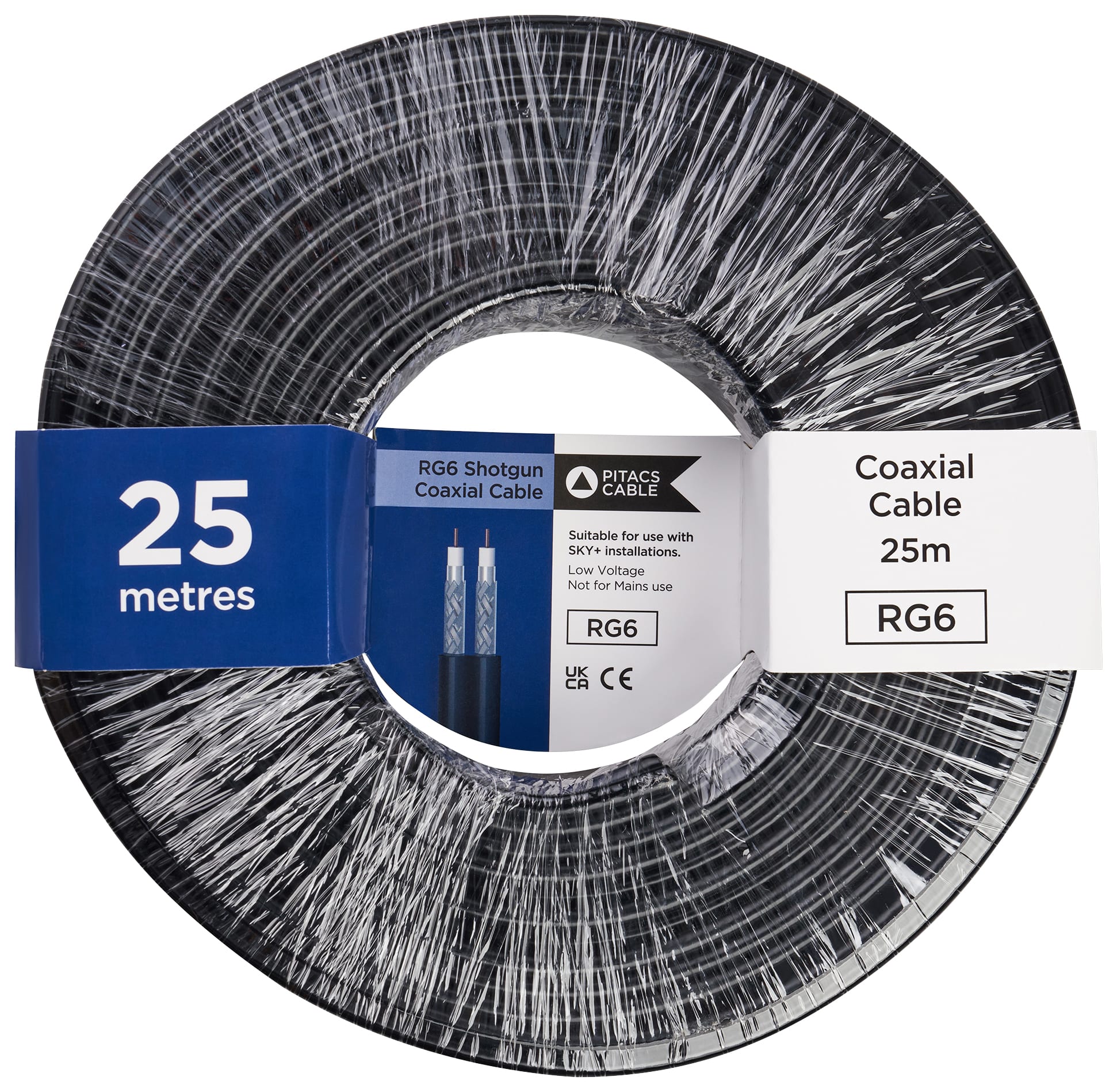 The RG6 Shotgun Coaxial Cable is suitable for many applications, including low power video, video signal, and broadband signals. This cable is designed to deliver optimal performance for television, satellite, and cable systems. Its black color ensures a sleek and professional appearance, seamlessly blending into any environment. With a shotgun-style design, this cable offers enhanced shielding and interference resistance, ensuring clear and stable audiovisual output.
