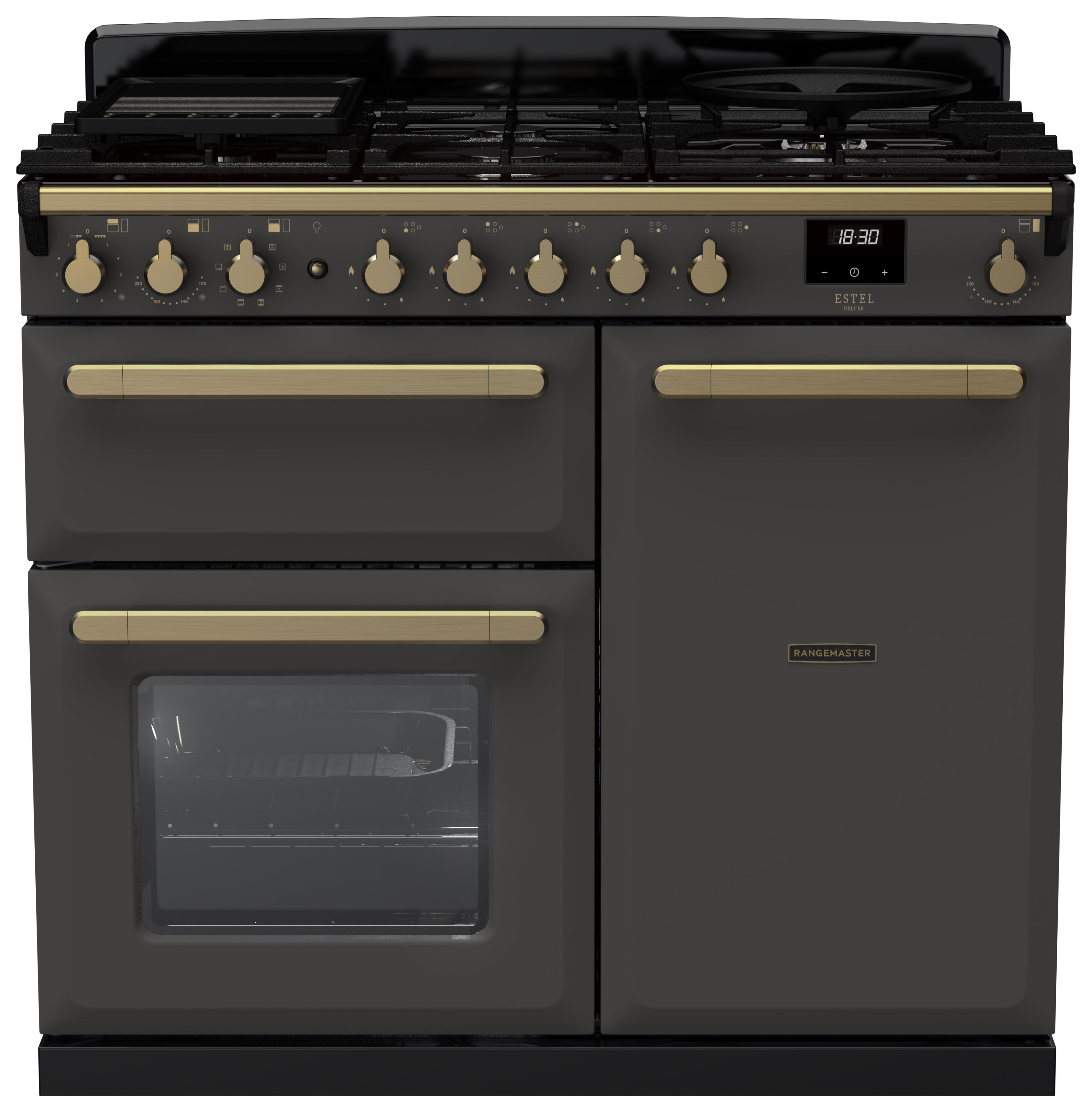 Rangemaster Estel Deluxe 100cm Dual Fuel Rangecooker - Slate + Brass