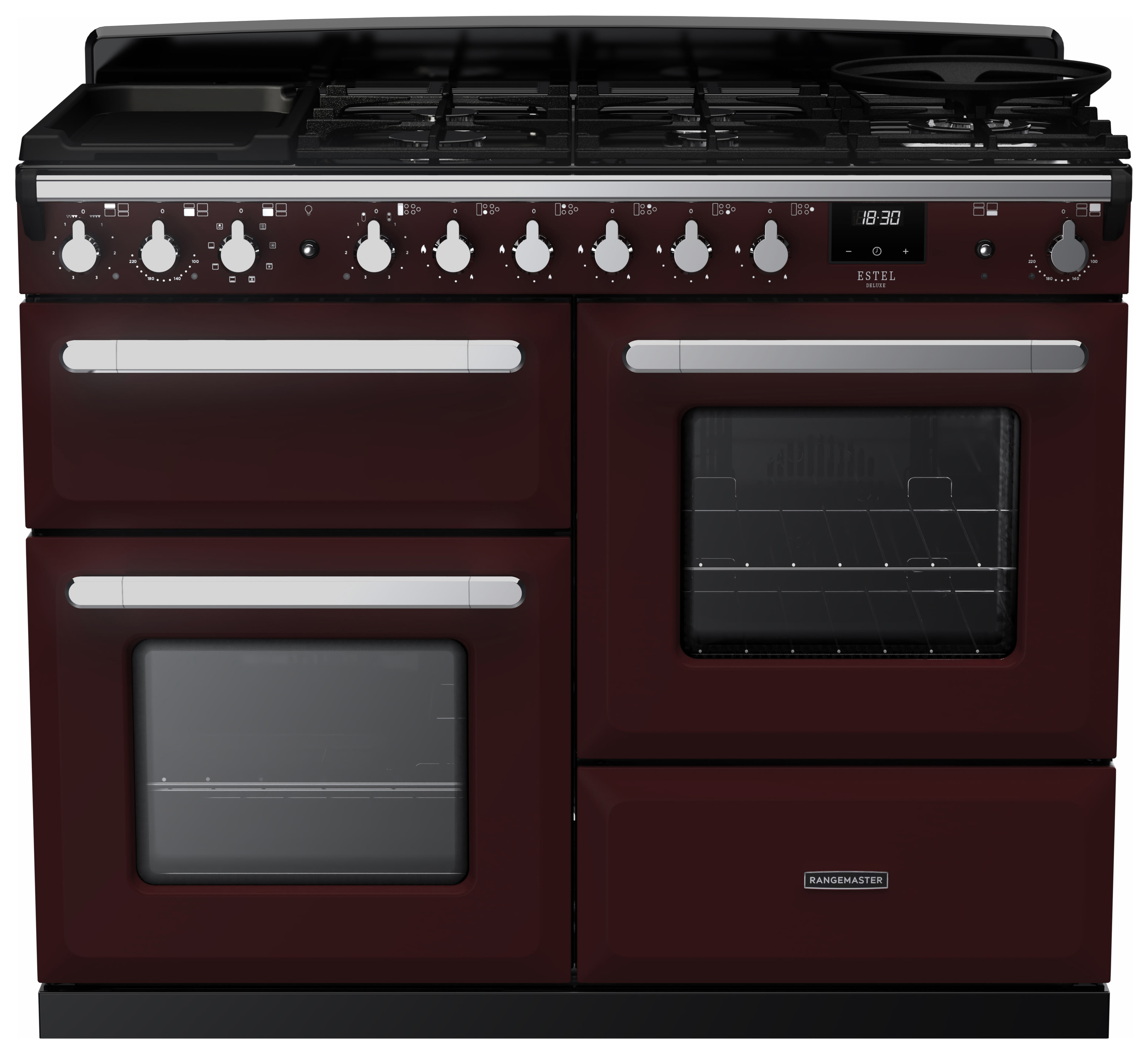 Rangemaster Estel Deluxe 110cm Dual Fuel Rangecooker - Bordeaux + Chrome