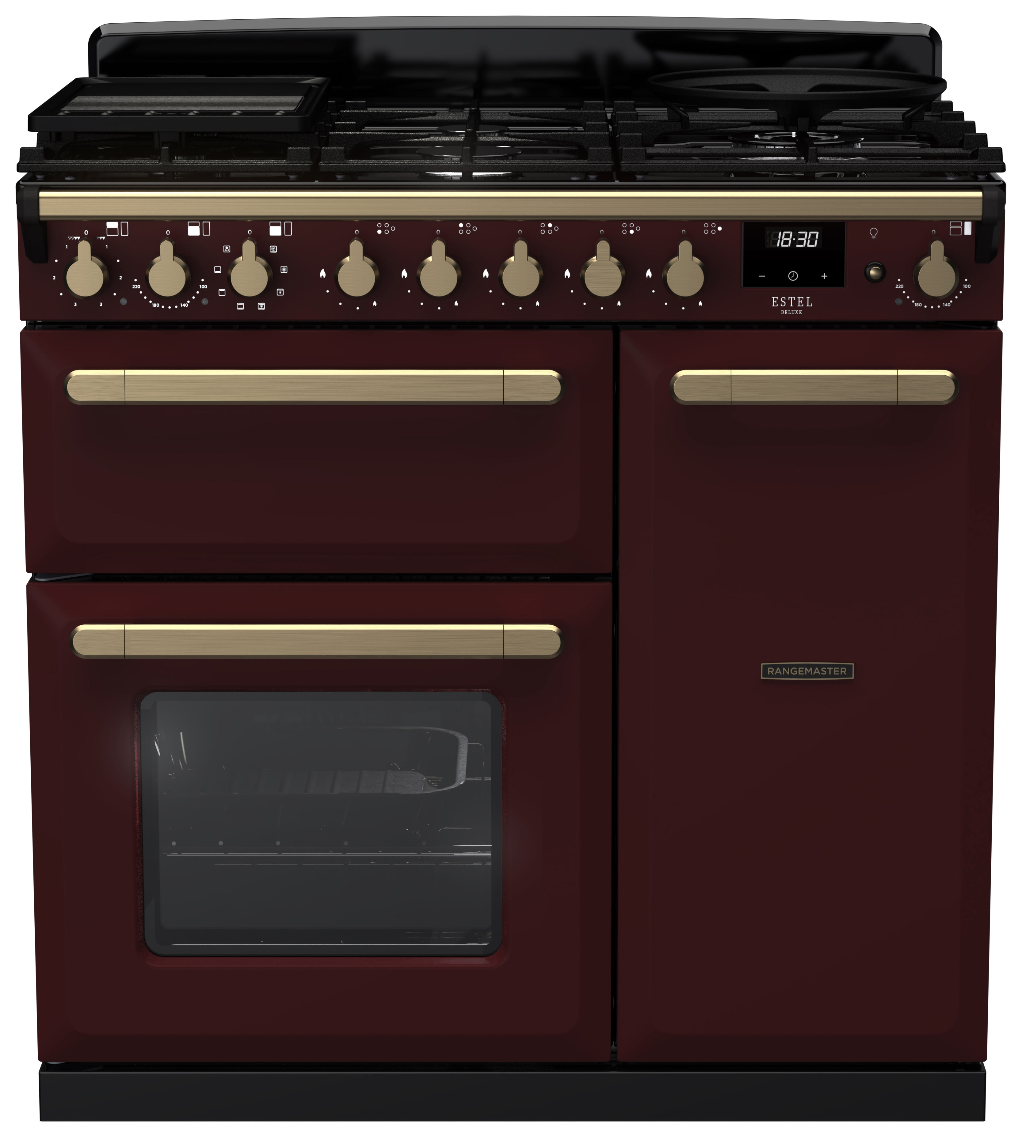 Rangemaster Estel Deluxe 90cm Dual Fuel Rangecooker - Bordeaux + Brass