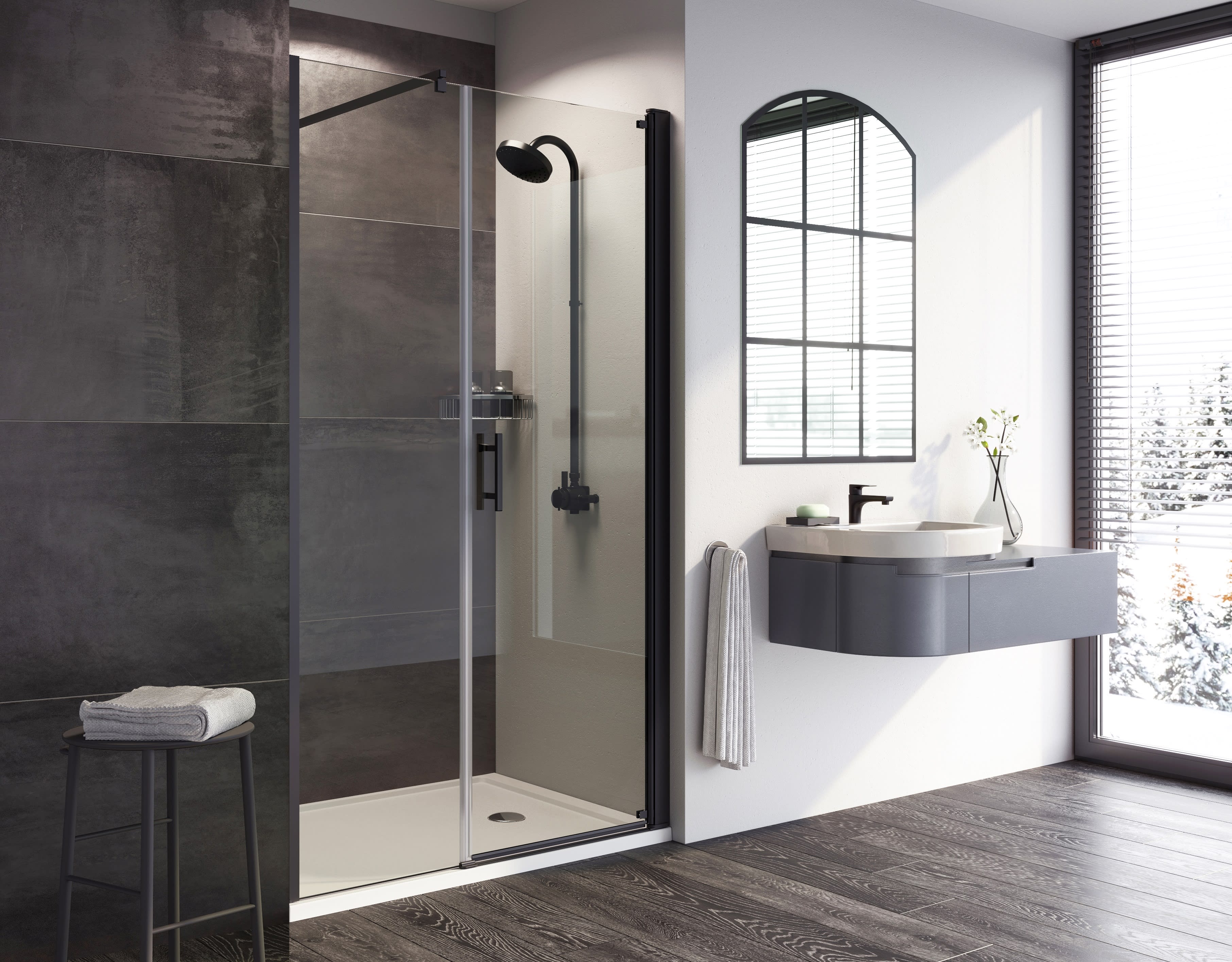 The pivot door shower enclosure with 8mm thick toughened safety glass, featuring Roman’s ultra care glass protection system, is superior in terms of its high end look and feel. The Roman Innov8 in-line panel for a recess fitting is compatible and sold separately.