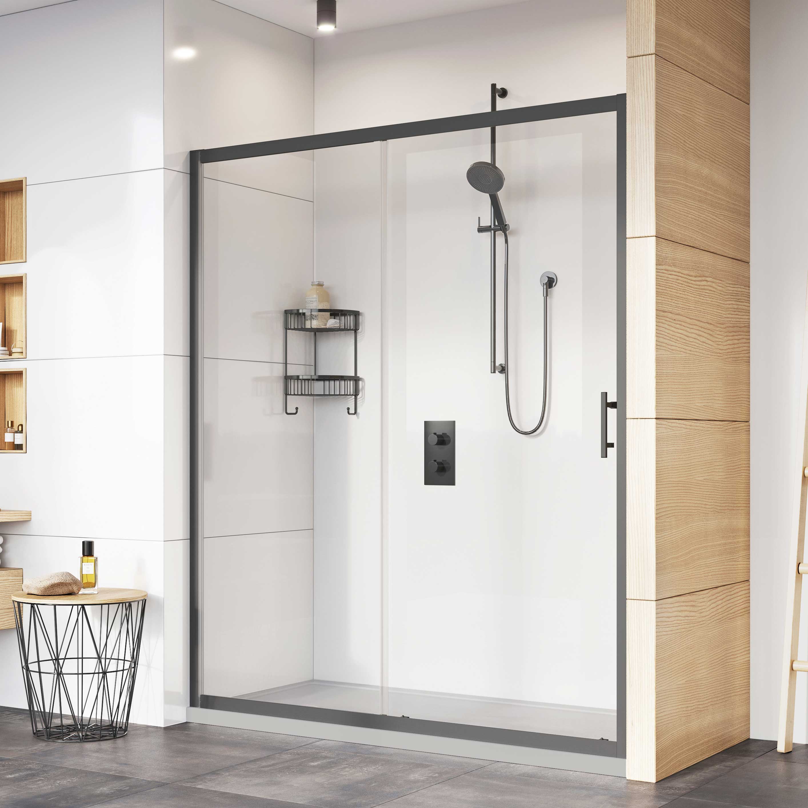 Introduce this impressive sliding shower door into your bathroom with the choice of chrome, brushed brass or matt black metal finish with 8mm ultra care protective glass. Designed to make installation easy with its fast fix system and extremely clever running systems. Create a shower enclosure with side panel fitting by matching up with the Roman Innov8 8mm side panel. The side panel is sold separately.