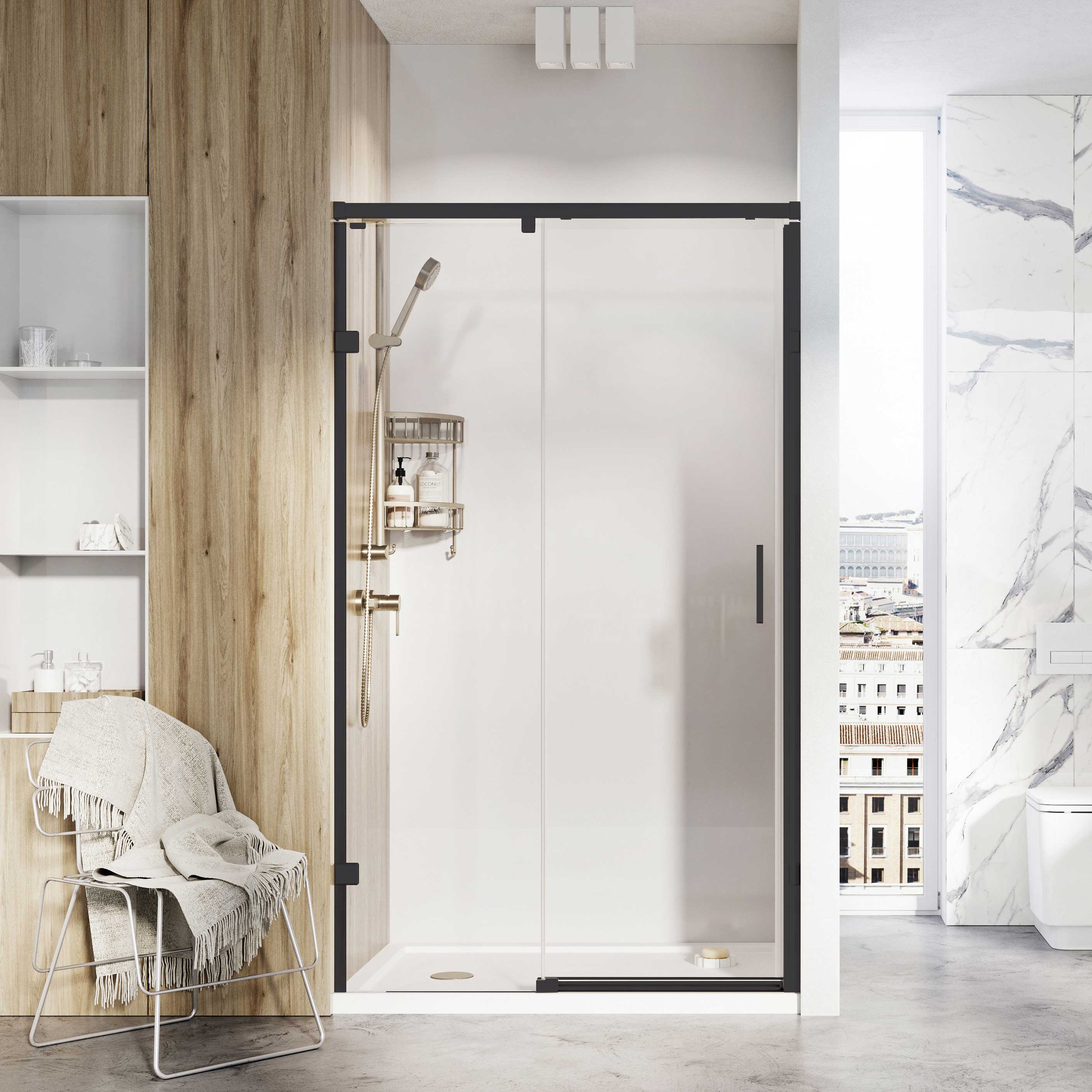 Roman Liberty 8mm RH Black Single Sliding Shower Door for Recess Fitting - 1200mm