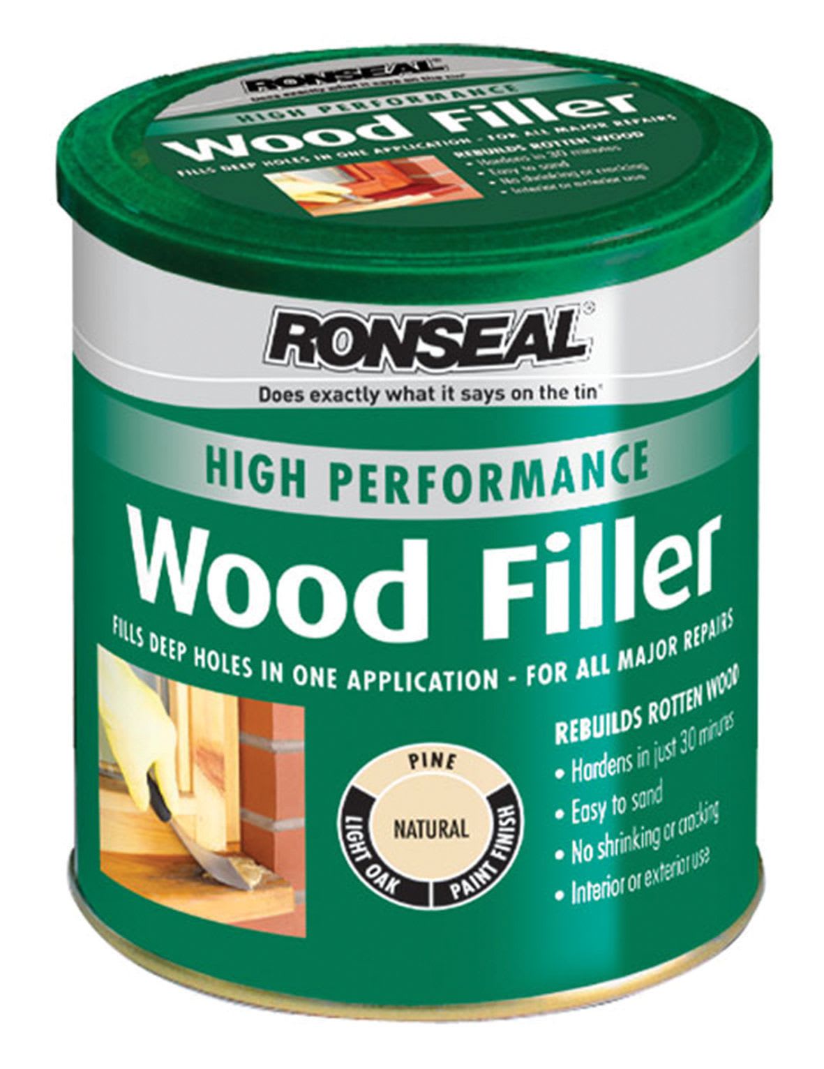 Ronseal High Performance Wood Filler has a two-part system that creates seriously tough repairs to virtually any interior or exterior wood. You can fill to any depth and even drill, screw or plane it.