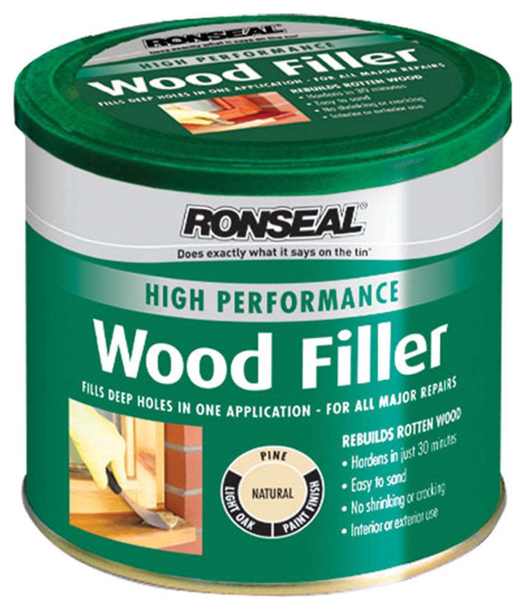Ronseal High Performance Wood Filler has a two-part system that creates seriously tough repairs to virtually any interior or exterior wood. You can fill to any depth and even drill, screw or plane it.