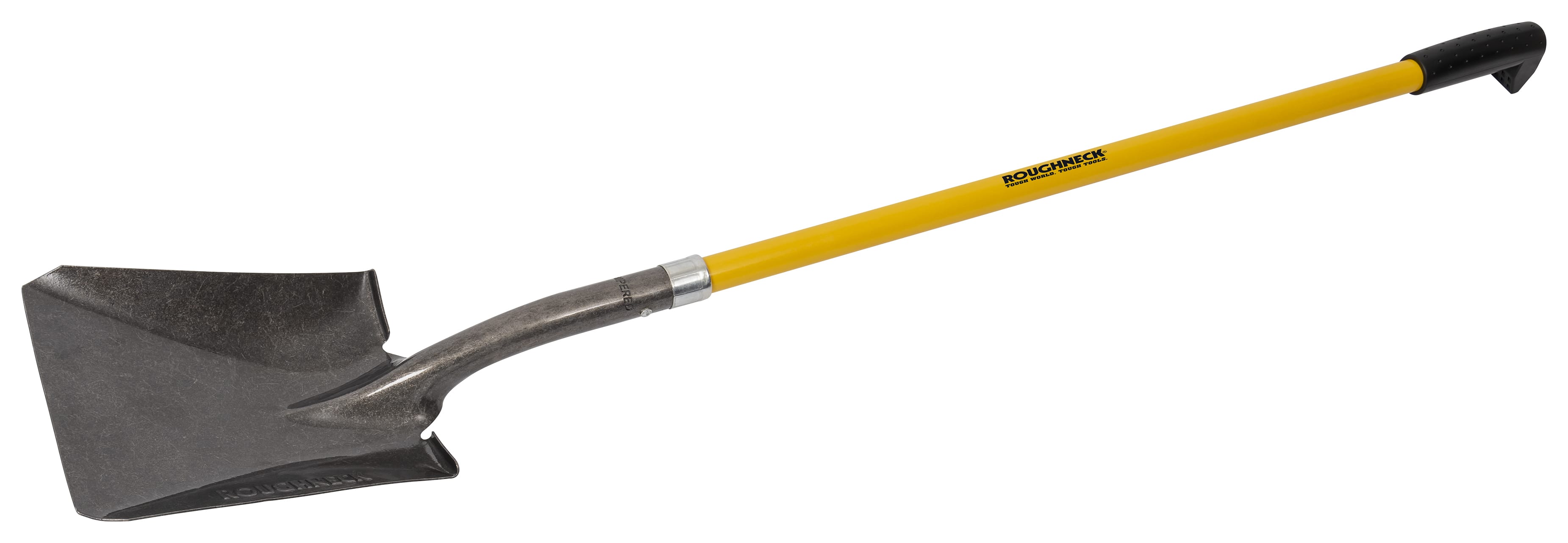 The Roughneck® Long Handled Square Shovel is ideal for scooping, levelling out, filling trenches and mixing cement. The long fibreglass handle with contoured grip, offers increased leverage and power, allowing for a more comfortable, upright position to be maintained whilst digging. Manufactured from heavy duty, carbon steel with a corrosion resistant, tumble, lacquered finish. The Power Ring socket, with steel reinforced plug, provides stronger blade to handle connection.