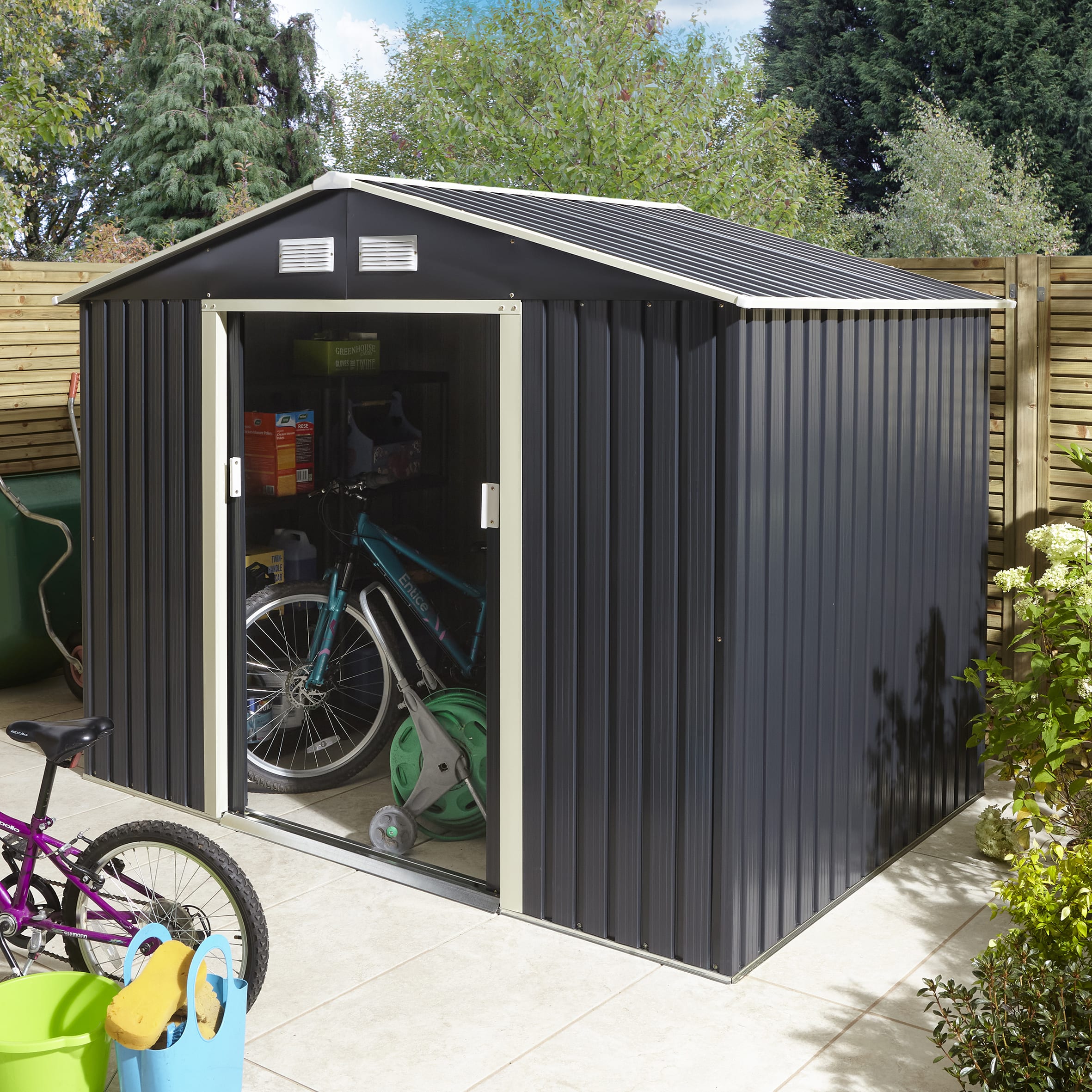 Rowlinson Trentvale Dark Grey Metal Apex Shed without Floor - 8 x 6ft