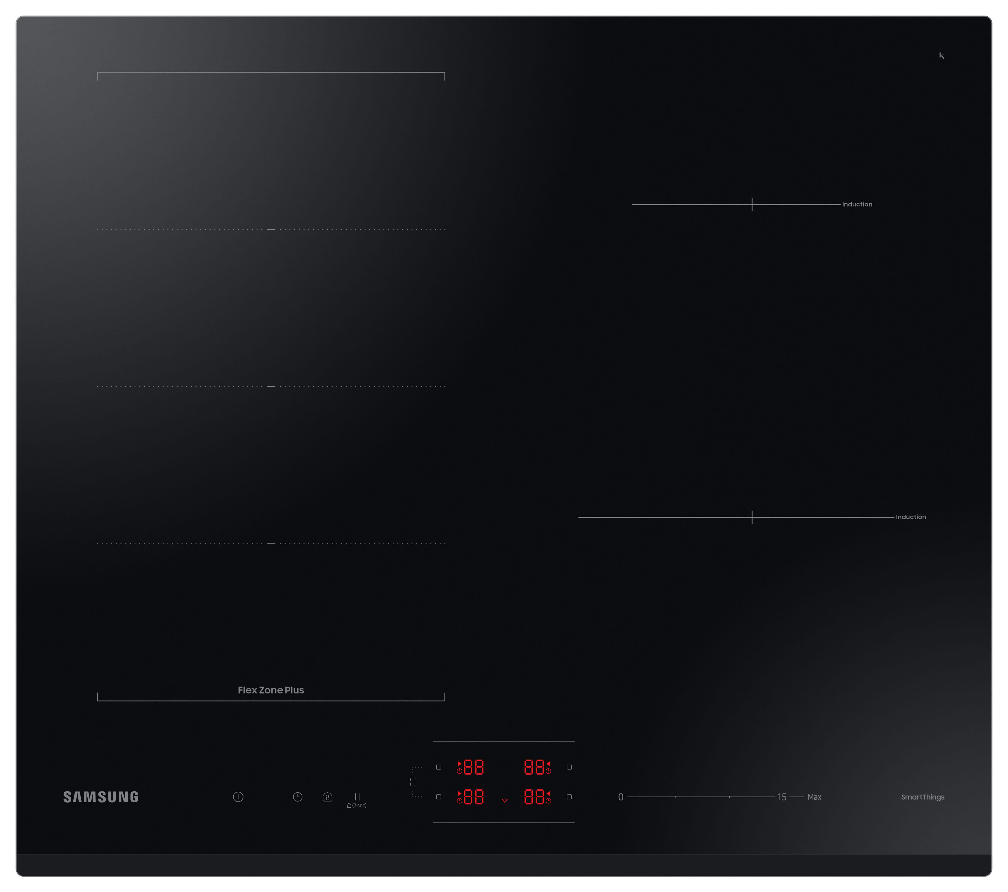 This Samsung Slim Fit Glass Induction Hob is a superb, innovative addition to your kitchen. The slim fit design frees up space for worktops, and the FlexZone Plus system provides flexible, reliable cooking for different sized pots and pans. Connecting the hob to the Samsung SmartThings app gives truly detailed control, and enables features such as the child safety lock and the auto-connect cooker hood.
