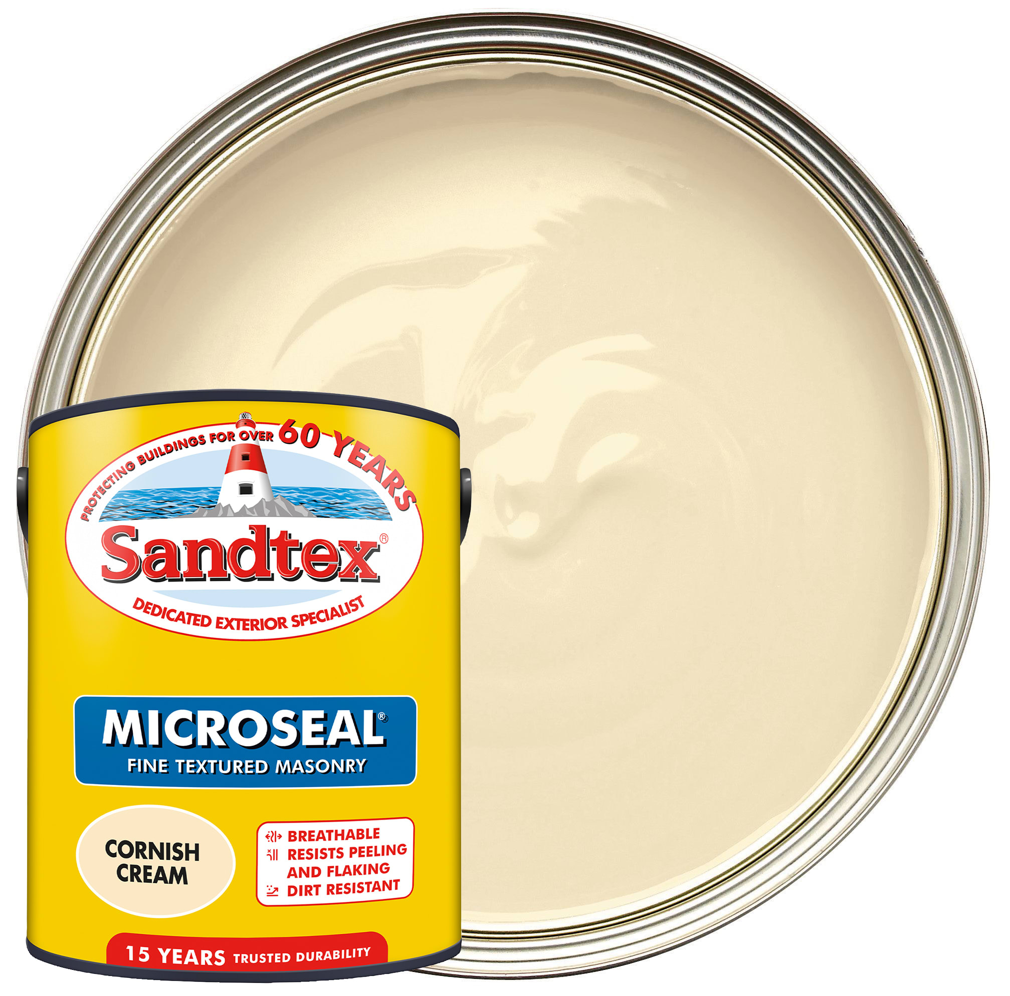 Sandtex Microseal Fine Textured Weatherproof Masonry 15 Year Exterior Wall Paint - Cornish Cream - 5L