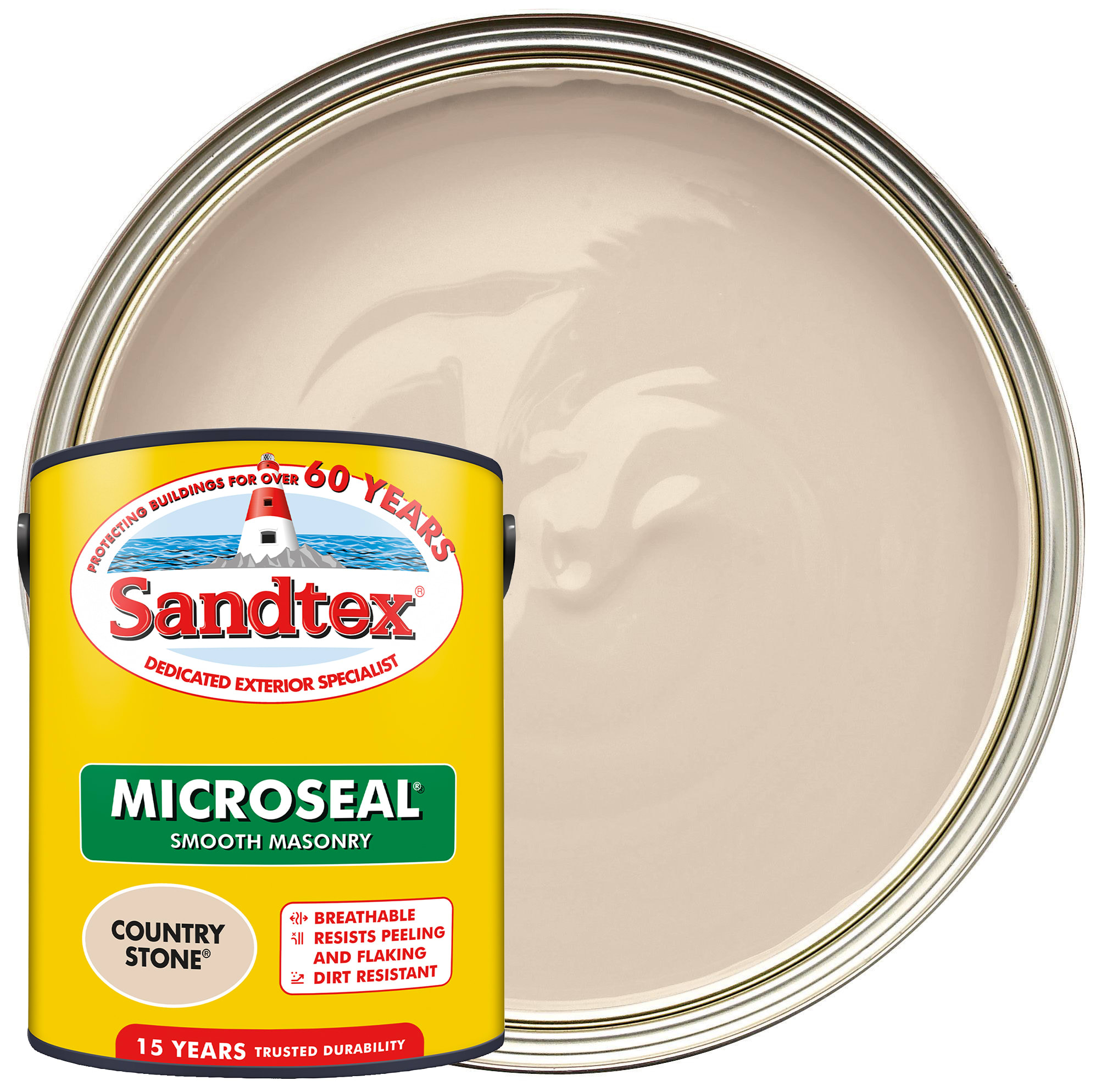 Sandtex Microseal Ultra Smooth Weatherproof Masonry 15 Year Exterior Wall Paint - Country Stone - 5L