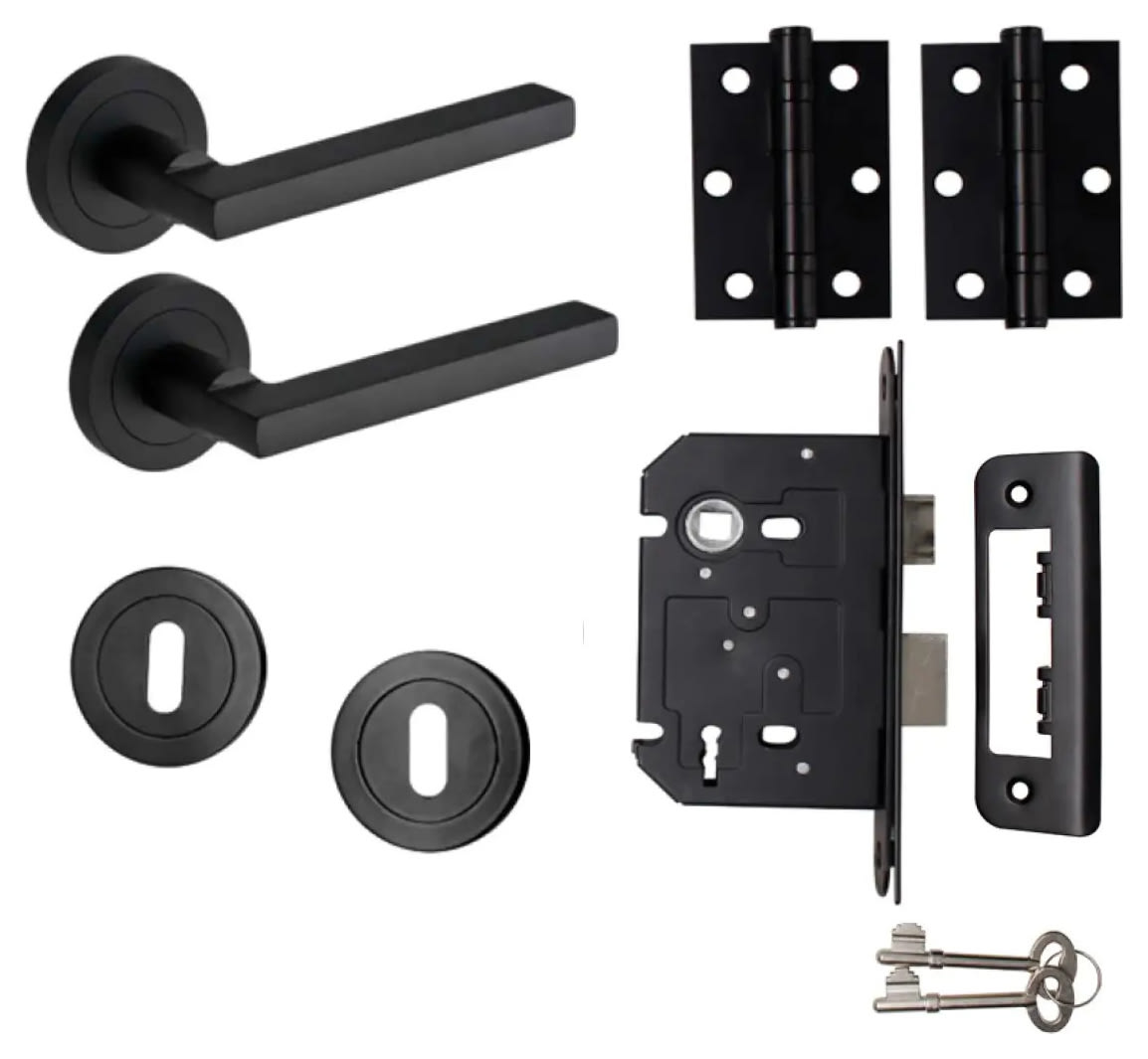 - Pack Contains: 1 x Pair of Lever on Rose Handles, 1 x 64mm 3 Lever Sash Lock, 1 x Pair of Keyhole Escutcheons, 1 x Pair of 76mm Ball Bearing Hinges