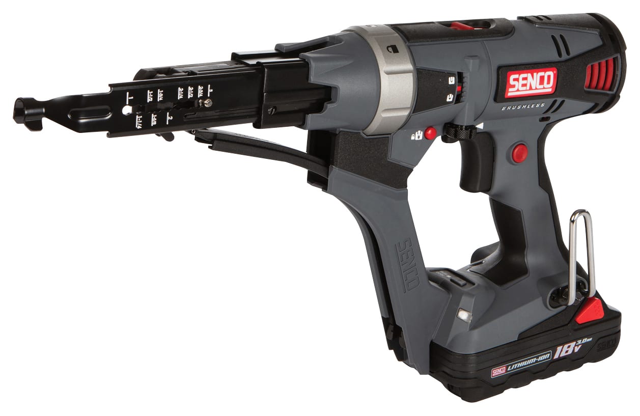 The Senco DS722-18V DuraSpin® Auto-Feed Screwdriver is powered by an efficient, variable speed, brushless motor. It has a variable speed selector for heavy steel and a quick-release feed system with our patented corner fit technology. The DS722-18V also features feed on return, so the next screw is aligned with the bit for better line of sight and easier, more accurate screw placement.
