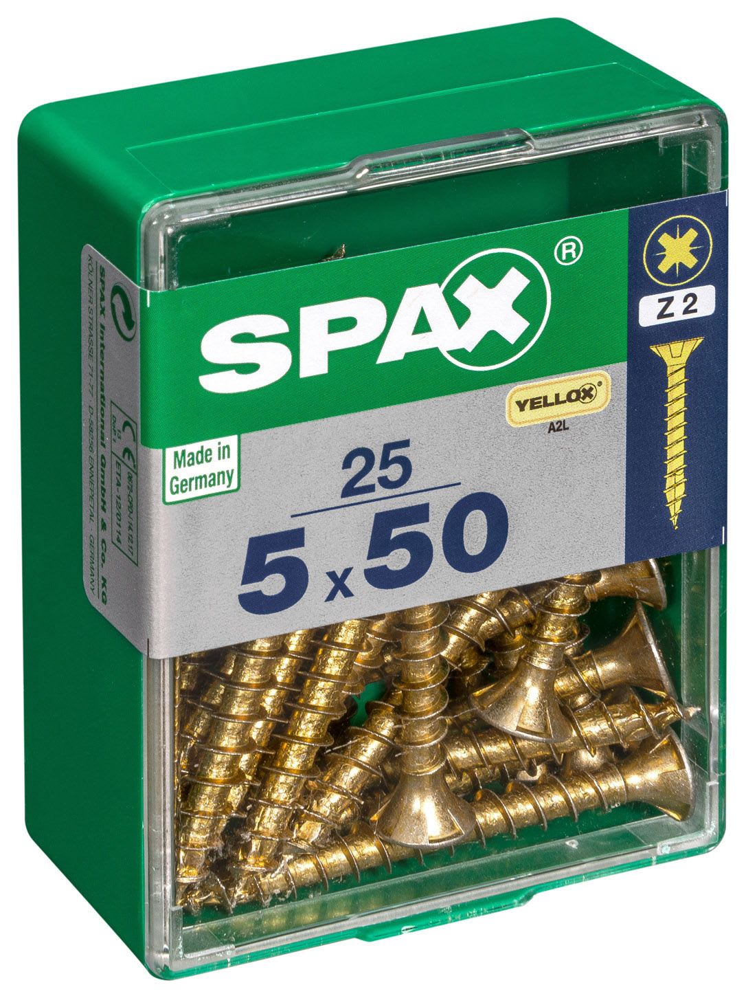 Spax PZ Countersunk Zinc Yellow Screws - 5 x 50mm Pack of 25