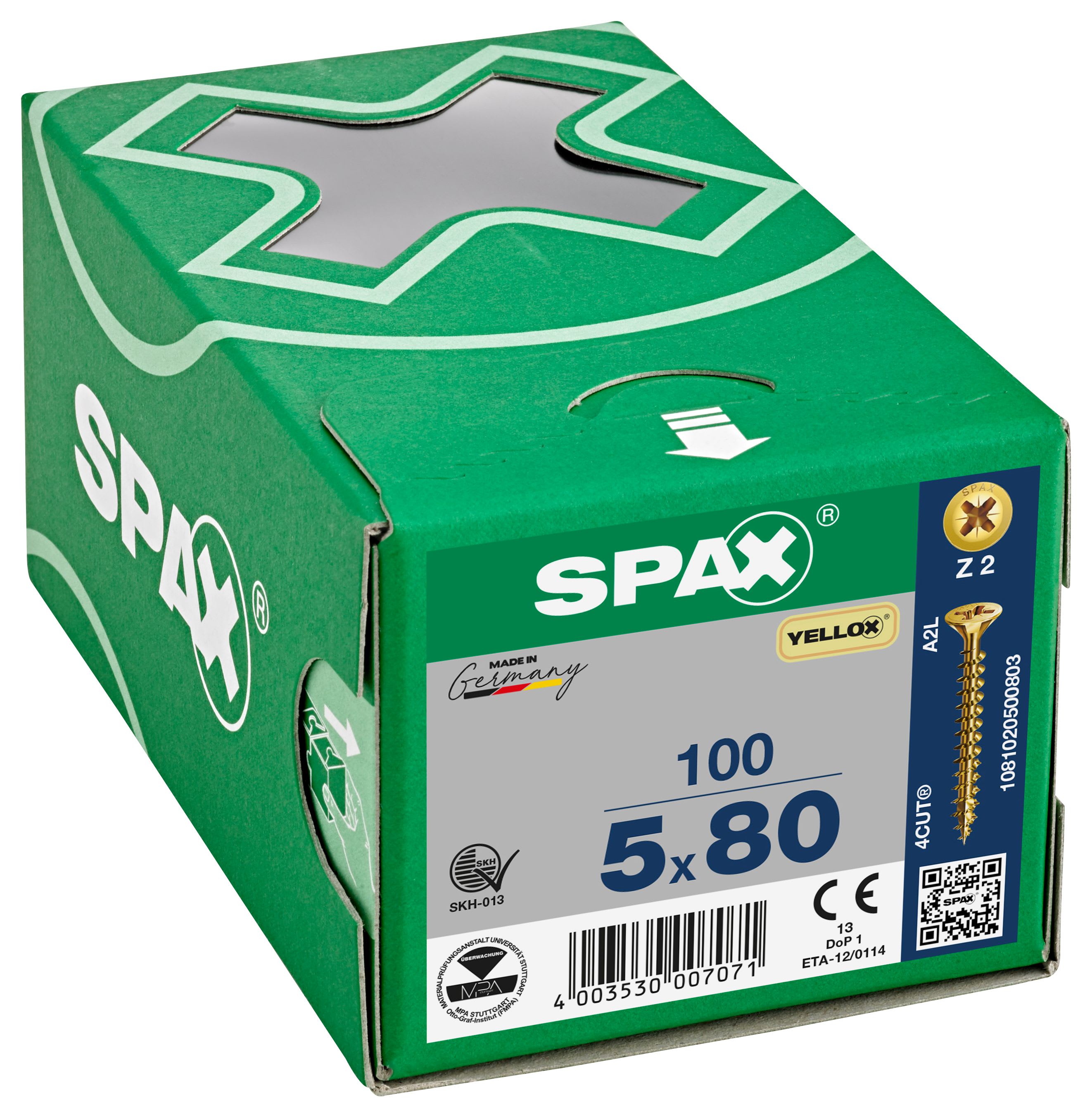 Spax Pz Countersunk Yellox Screws - 5x80mm Pack Of 100