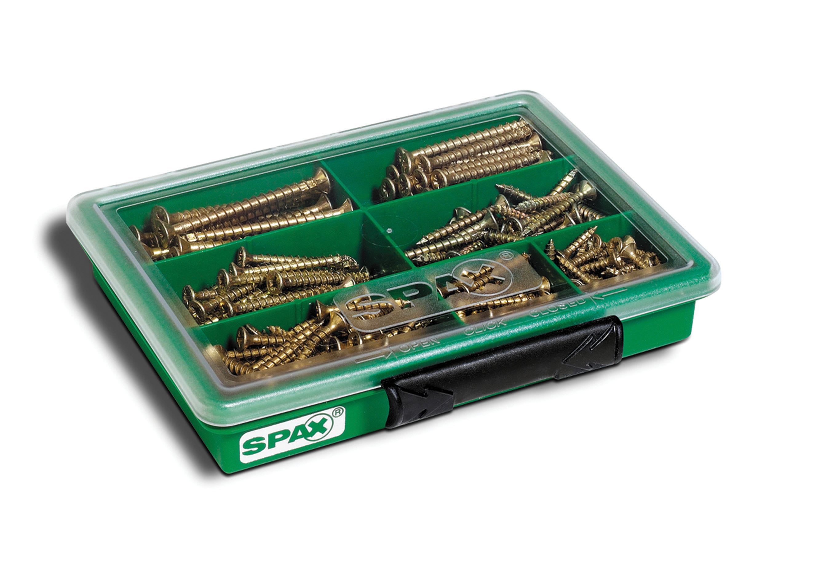 Assortment Screw set 245 Piece, with 7 YELLOX Flat Countersunk Screw Sizes with mini hinged case for use in wood, chipboard, plastic & thin sheet metal.