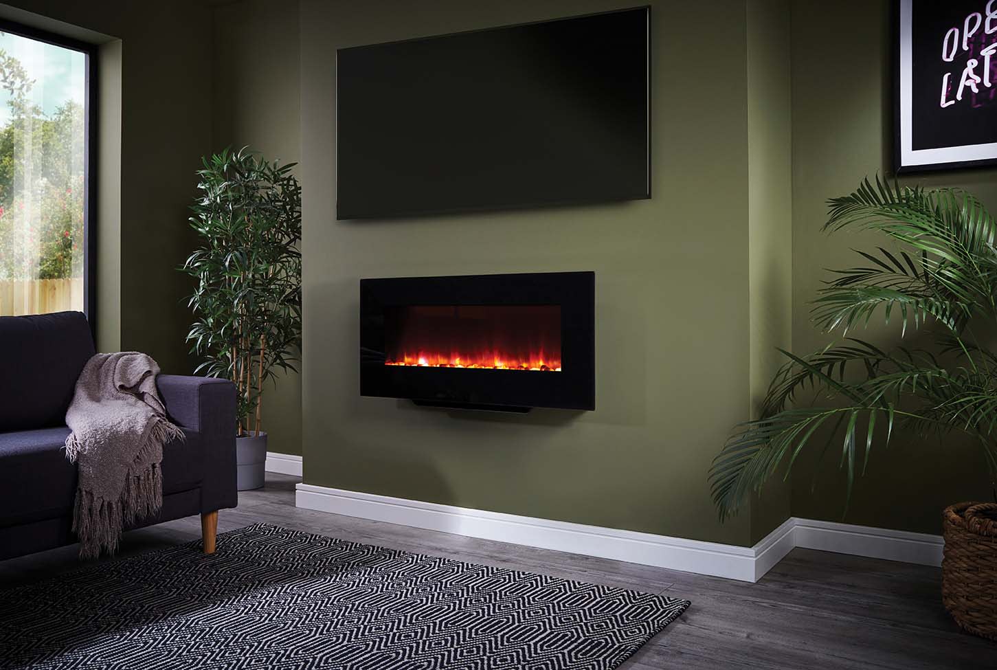 The Suncrest Santos Electric Fire is a contemporary, wall-mounted electric fire with a modern black glass fascia. LED flame effect has 3 flame settings, realistically flickers and illuminates the glowing log bed within. If you want the flames without the heat, the flame effect only setting will ensure you can sit back and enjoy the flames gently flickering without the heat. 13 different ambient mood lighting colour settings give you even more control. Supplied with a smart remote control, the electric fire produces up to 2kW of heat, 7 day programmable timer, draught detection and adaptive start operation. The Santos does not require a chimney breast or flue, comes fully assembled and is covered with a 1 year warranty.