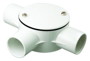 This White 3 Way Conduit Tee Box provides secure connections for conduit wiring in residential, commercial, and industrial applications. Featuring a clean white design and a 25mm diameter, this conduit tee box seamlessly integrates into any conduit system while offering three-way connectivity for efficient wiring setups. Its sturdy construction ensures longevity and reliability, making it suitable for a variety of electrical projects.