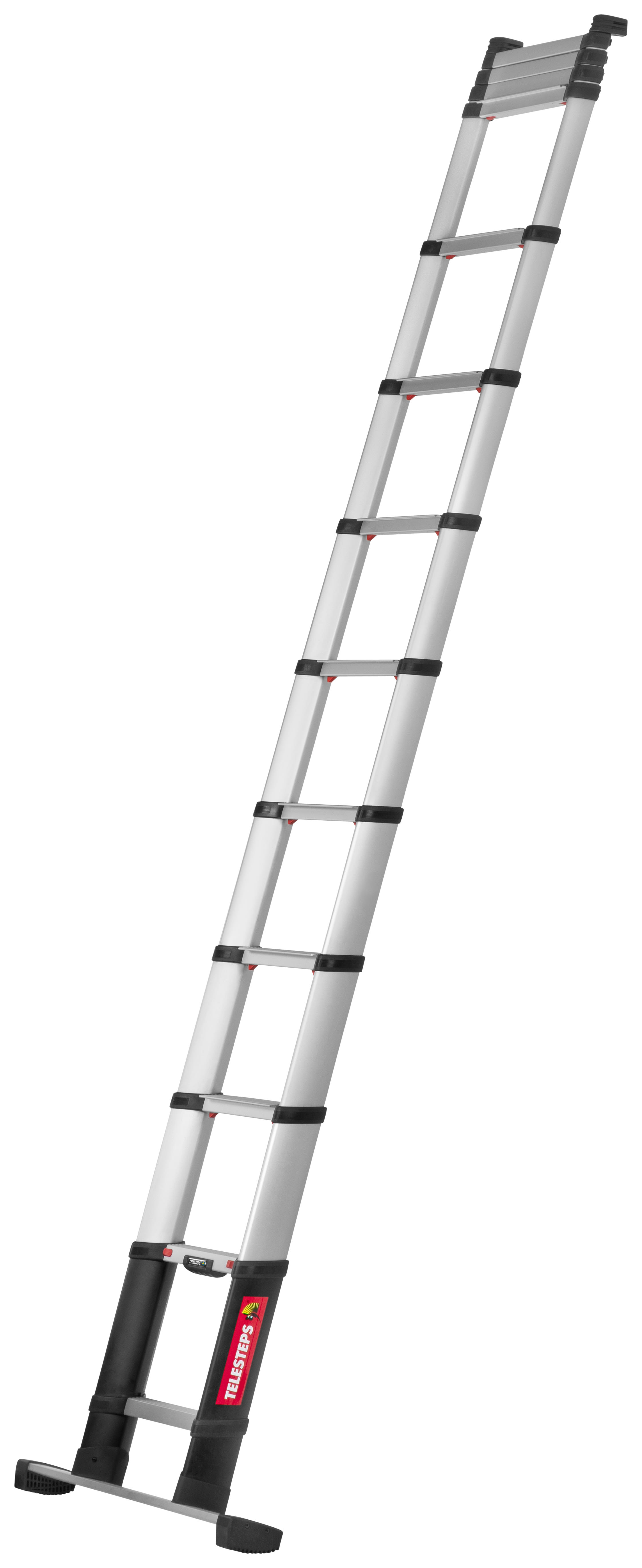The Telesteps Prime Line Telescopic Ladder with Stabiliser Bar features a triangular tube design which increases strength and makes the ladder more resistant to twisting. Lightweight but strong, made of high quality anodised aluminium with glass fibre reinforced plastic fittings. The ladder is designed be used at a 75° leaning angle, angled rubber feet ensure you always have maximum surface contact. A rubber top section also helps to prevent sliding and limits damage to walls. Wide and level rungs minimise slipping and reduce fatigue. These rungs also feature grooved channels to disperse dirt, making the rungs safer. The red safety tabs make it easy to ensure every rung is locked before you use the ladder.