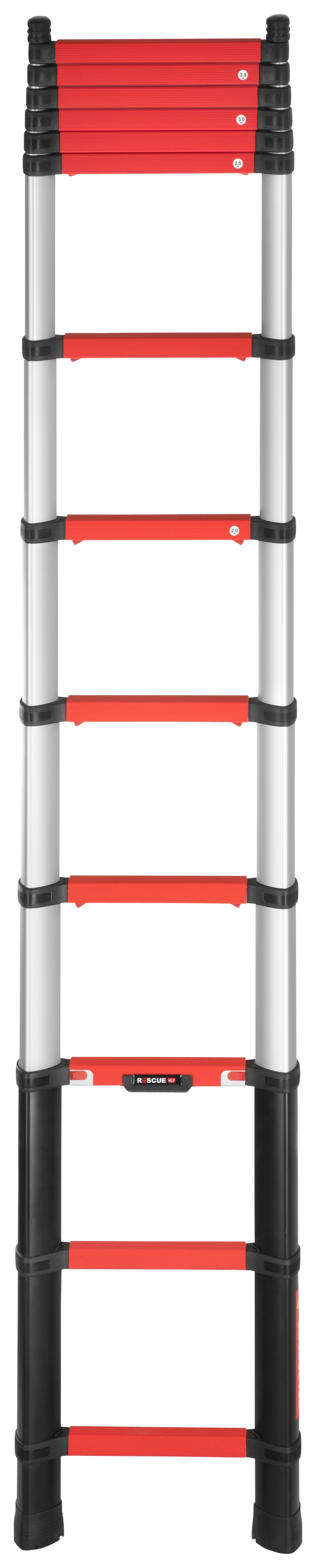 The Telesteps Rescue Line Telescopic Ladder is the first telescopic ladder in the world where 3 people can use the ladder at the same time. It is the 2nd generation with the revolutionary triangular tube design, which makes the ladder stronger and more torsional rigid than ever before. Because of its compact nature, it’s especially useful in narrow spaces, staircases, in elevator rooms, etc. It also fits in any vehicle, being accessible whenever you need it. To save time while extending the ladder in pressured situations, rescue line has built-in height indicators, letting you choose the right height for every specific situation.