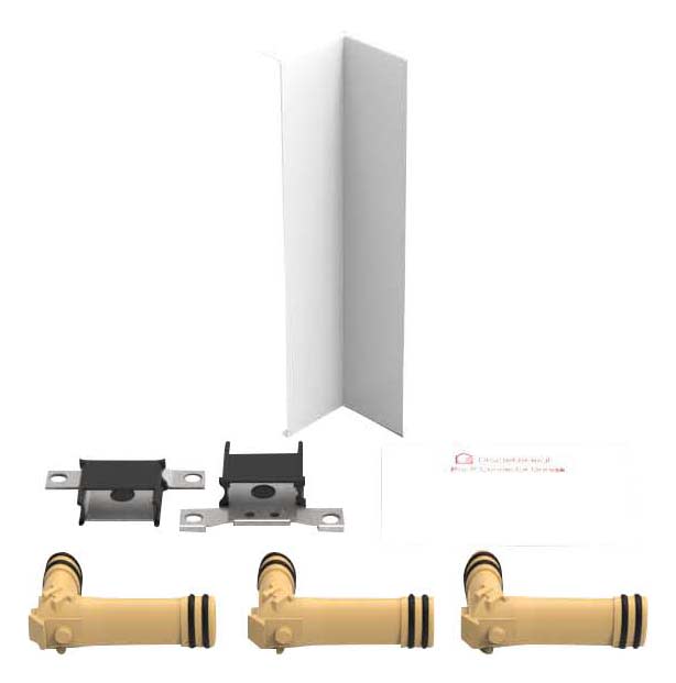 • Includes: 2 connector clips, 3 of 90° elbow connectors (oval-oval), 10ml sachet of grease and 1 internal corner cover