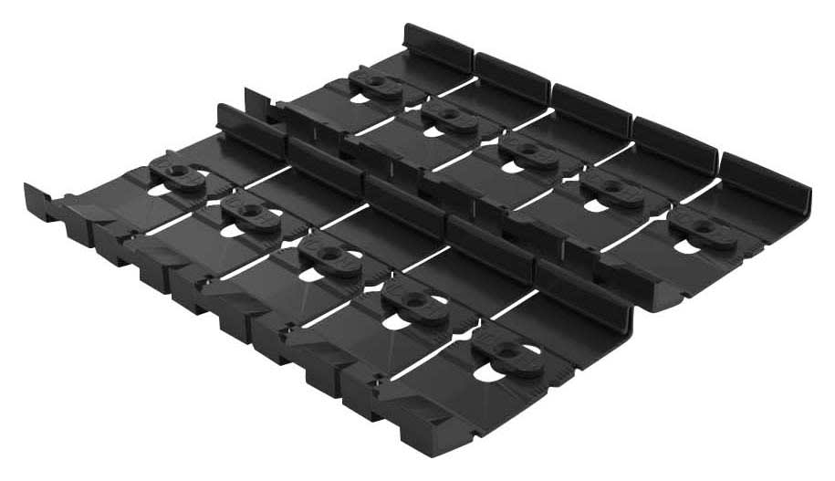 The ThermaSkirt Wall Mounting Brackets serve as additional or spare options for all ThermaSkirt profiles. Manufactured from durable, heat-resistant thermoplastic, these mounting brackets provide robust support. The brackets are designed to allow vertical movement, making them adaptable to accommodate a variety of floor coverings, ensuring a secure and versatile installation. The pack includes 10 wall mounting brackets & 10 sliding washers.