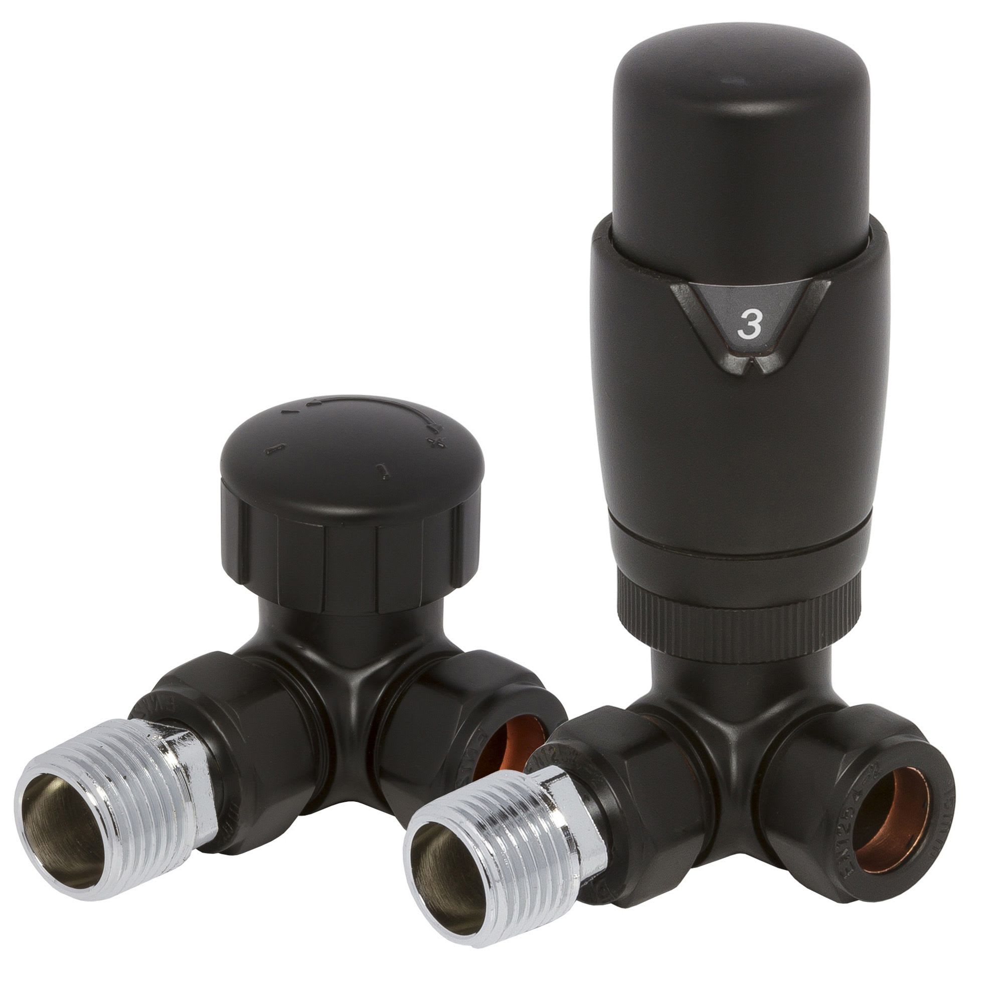 Towelrads 105mm x 65mm Round Corner Thermostatic Radiator Valve & Lockshield Valves - Black