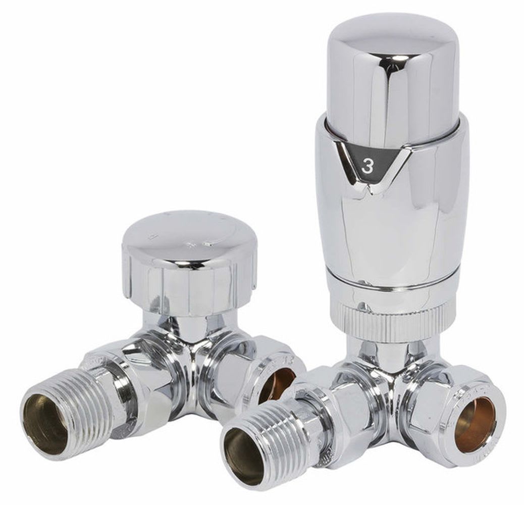 This Round Corner Thermostatic Radiator Valve and Lockshield Chrome Valves offers control over your radiator so you can heat your room in comfort. The sleek, easy to clean design is sure to complement your radiator.