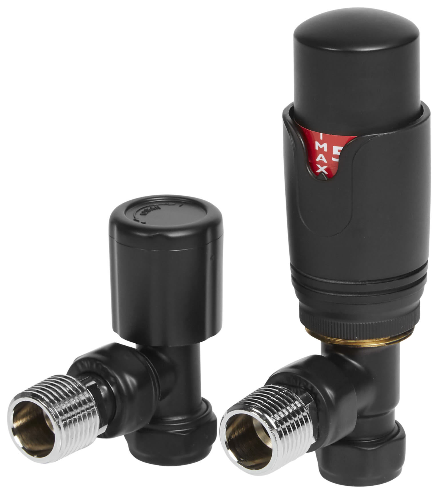 Towelrads 15mm x 1/2" Angled Thermostatic Radiator Valve & Lockshield Valve - Black