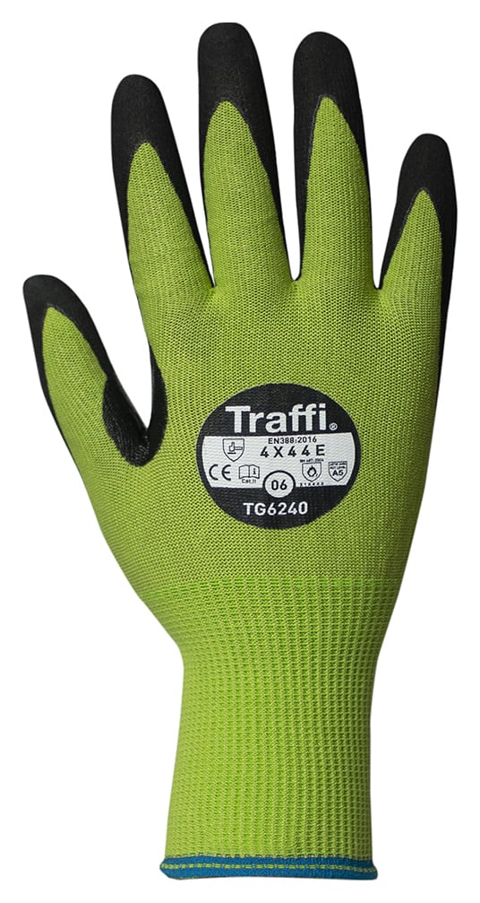 The Traffi TG6240 Carbon Neutral Cut Level E Nitrile Foam Glove - Size XL is a high performing 15gg cut level E glove featuring life extending technology (LXT) and a palm dipped MicroDex Ultra coating, ensuring excellent grip in wet, dry and oily conditions. Conforming to cut level E under the new EN388:2016 standard, TG6240 has unrivalled levels of dexterity and comfort and is designed to last for long periods of time. It also features a thumb crotch to further extend the wear life of the glove. The LXT range is certified as carbon neutral. This means that at no extra cost, your LXT glove has zero negative impact on the environment, to the point of delivery.