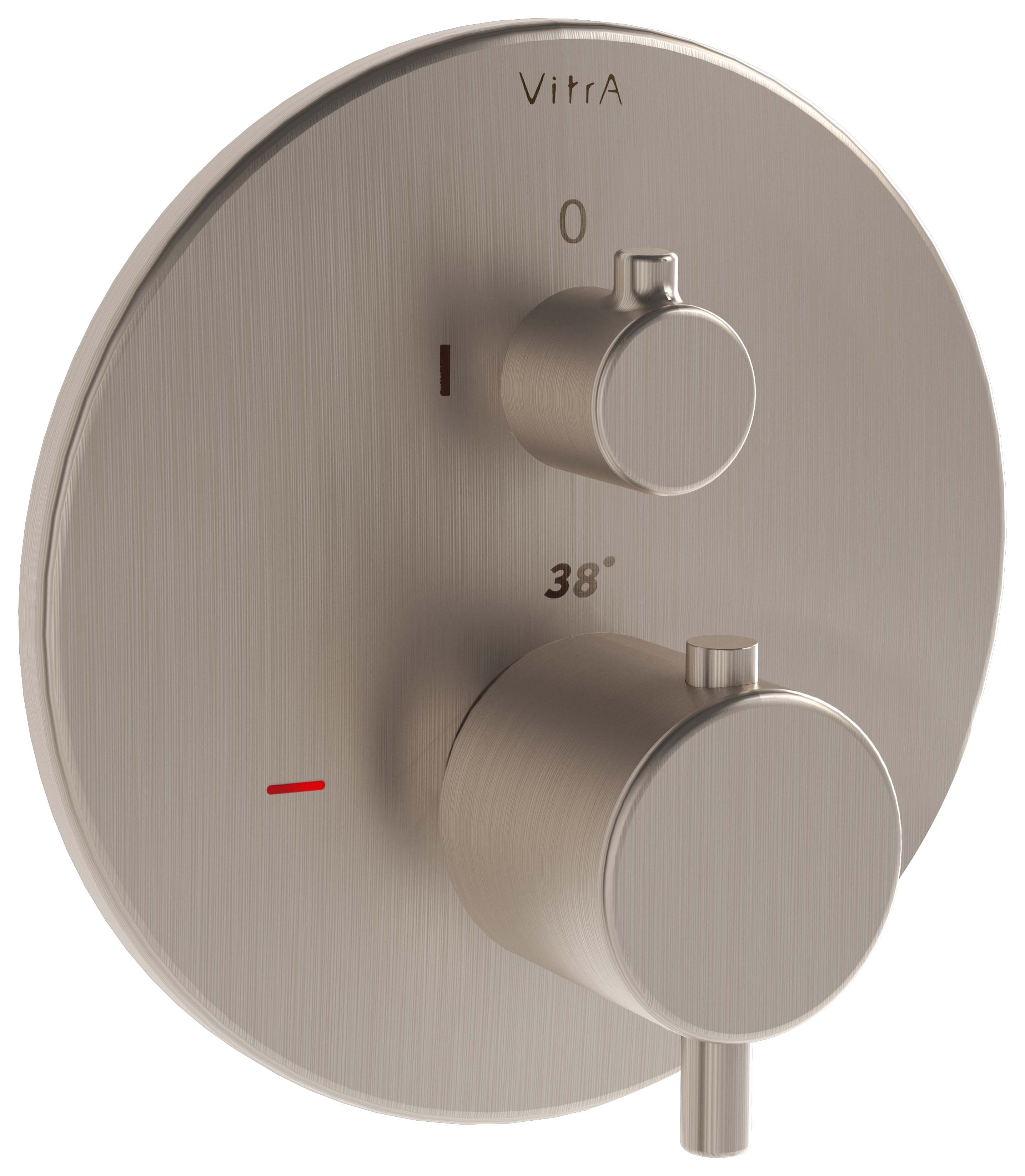 VitrA Origin Round Built-In 1 Way Thermostatic Bath & Shower Mixer Valve - Brushed Nickel