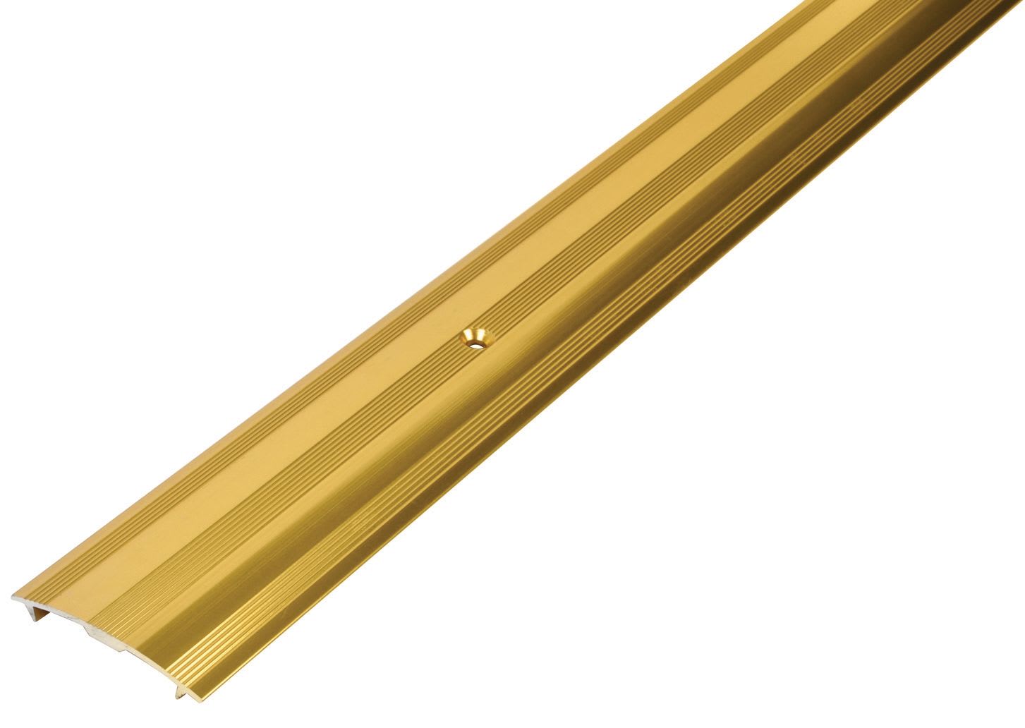This Vitrex Gold Carpet Cover Strip adds that truly finished touch throughout your home. This screw-down profile has two ridges on the sections base which enables it to bite into the nap of the carpet and hold it firmly in place. The gold finish is applied to a solid metal base, used for its high quality.