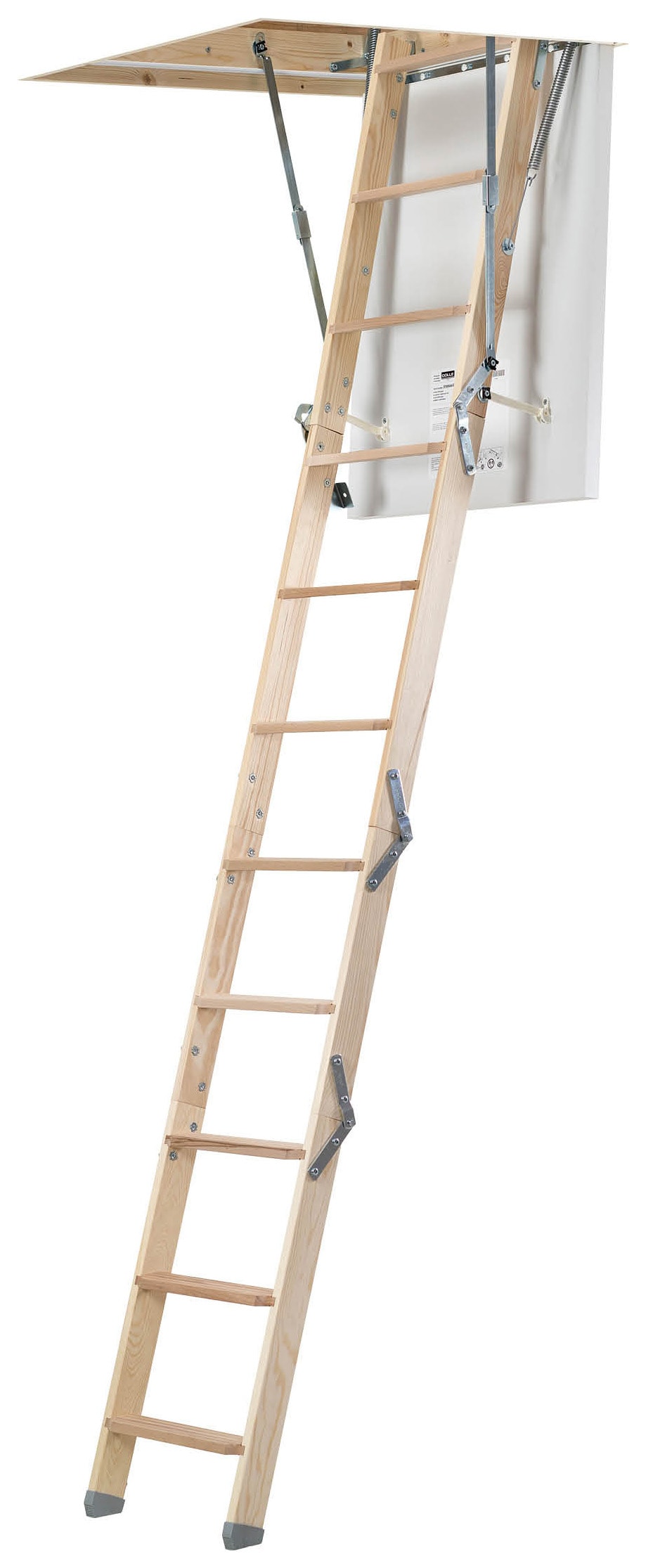 - Supplied as a semi-assembled unit with a compact four-section timber loft ladder, insulated draught-proof trapdoor, loft surround, spring-assisted stowage mechanism, and a timber stowing pole