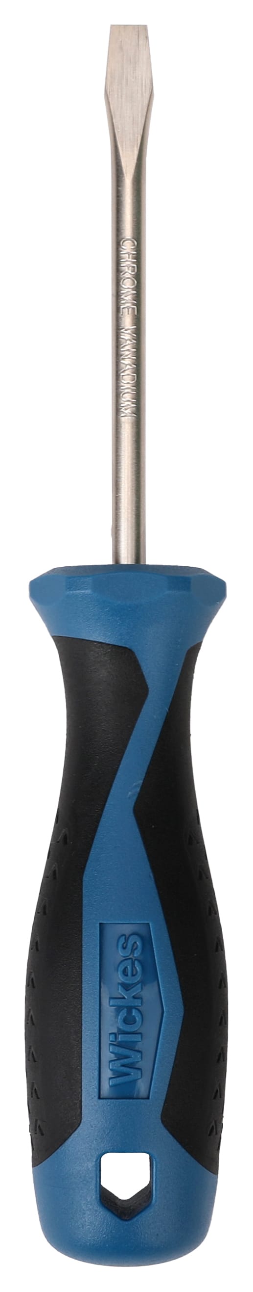 Robust plain slotted screwdriver with a vanadium steel blade. While we are introducing our new black electrophoretic anti-corrosion coating into our Hand Tools range, you may still receive the tools in a chrome finish. We are updating our range with a black electrophoretic coating that is better for people and the environment, without any impact on quality or performance.