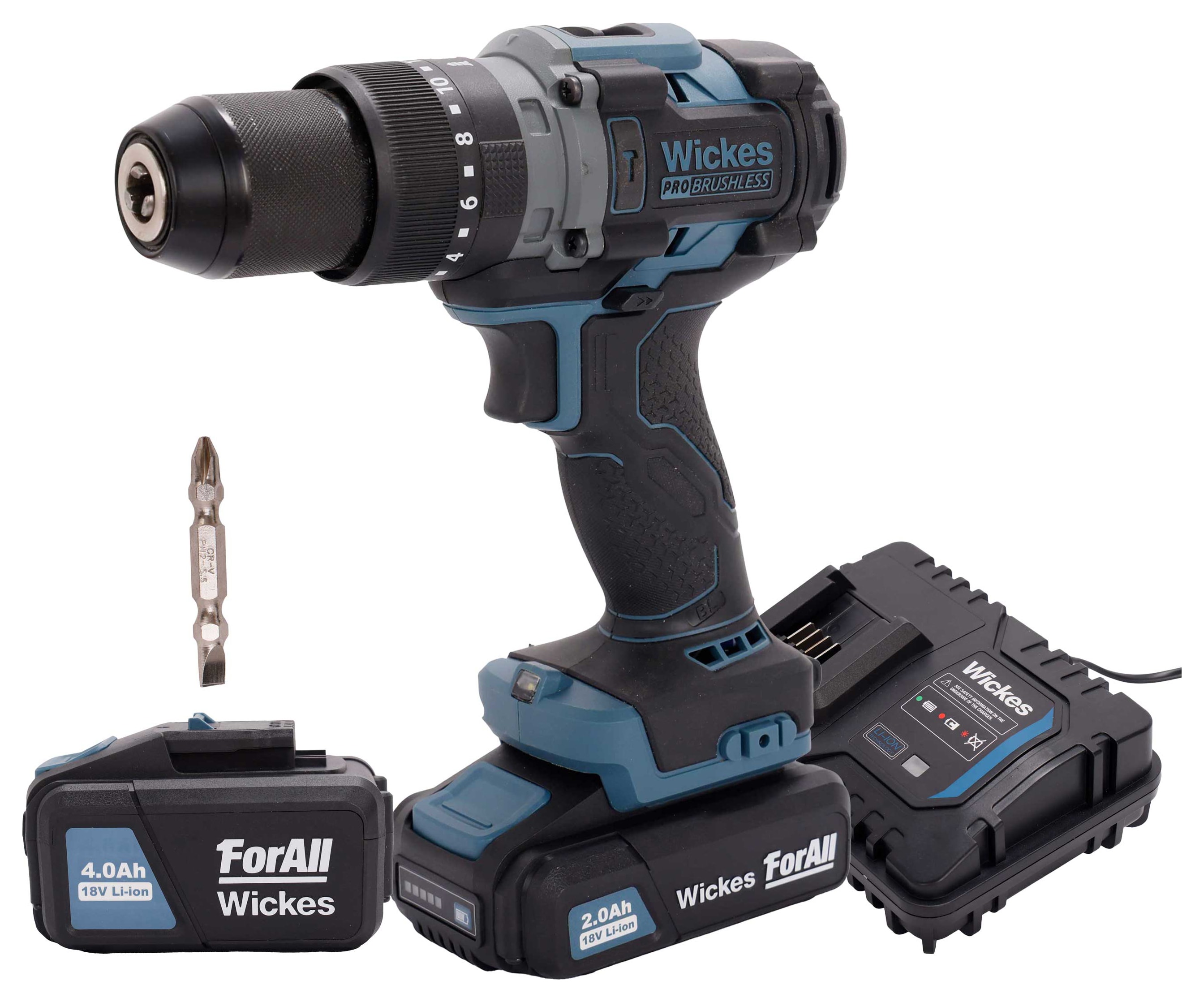 Wickes 18V Cordless Brushless Combi Drill with 1 x 2.0Ah & 1 x 4.0Ah & 4A Charger