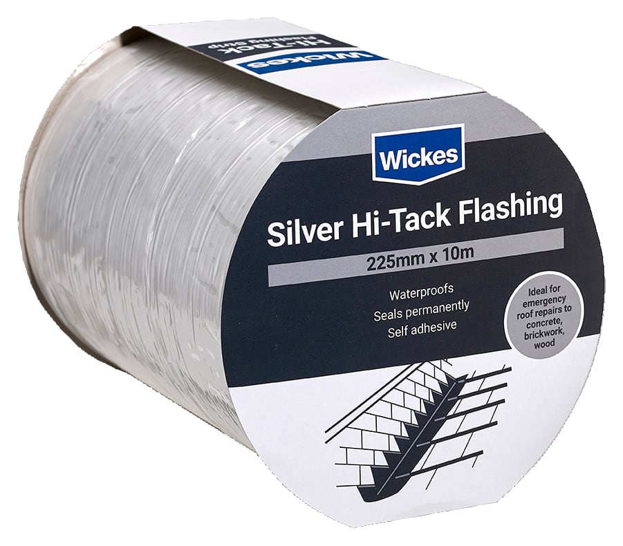 The Wickes Aluminium Self Adhesive Hi-Tack Flashing Strip is easy to use and ideal for those emergency roofing repairs. Bonds instantly to a wide range of building materials like concrete, polycarbonate, wood and brickwork. Its Ideal for repairs to lead flashing, valley gutters and roofing felt joints on flat roofs. For best results use flashing primer before use especially when using against porous surfaces.