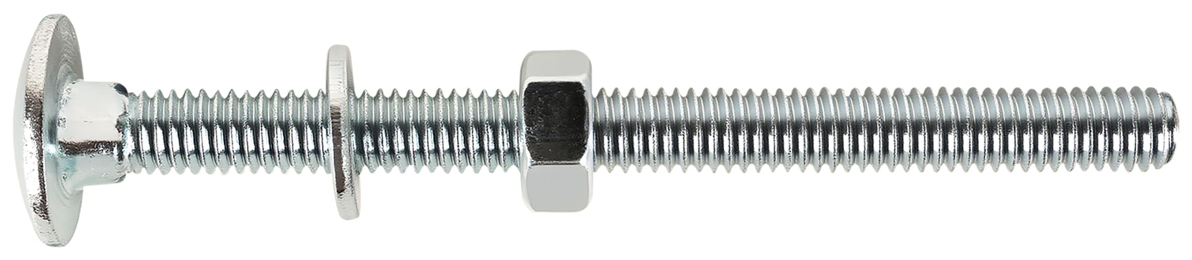 These carriage bolts nut and washers are designed specifically for timber joists and beams. These bolts are your go-to solution for building sturdy structures with ease. Measuring 75mm in length with a 6mm diameter, these bolts are zinc-plated for enhanced durability, ensuring long-lasting performance in demanding construction applications.