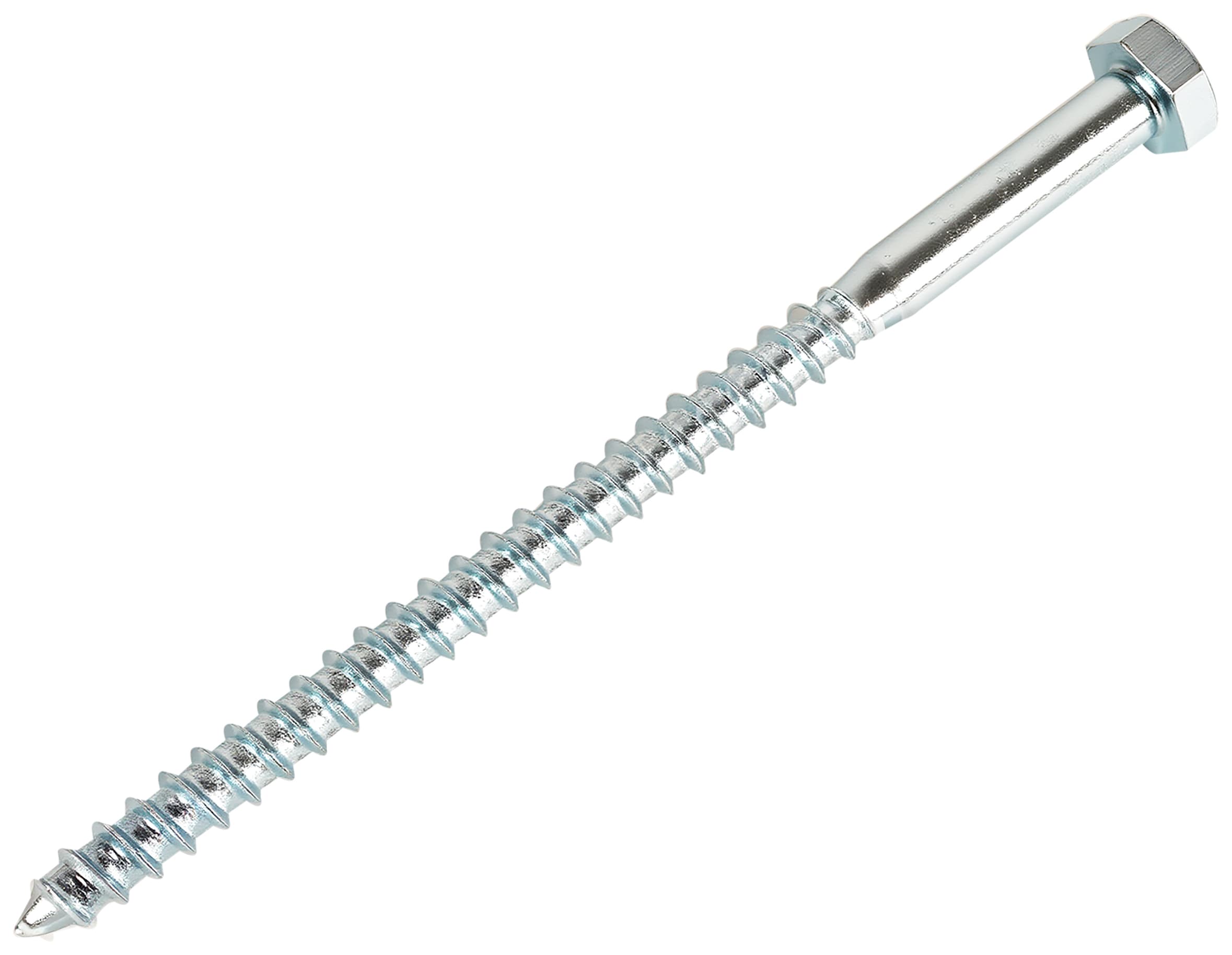 Wickes Coach Screws are designed for use with timber joists and beams, featuring a single coarse partial thread for enhanced grip. Measuring 130mm in length with an 8mm diameter, these screws are zinc plated for added durability and corrosion resistance. The hexagon head allows for greater torque when using a socket driver, making them an ideal choice for secure and reliable fastening in various construction projects.