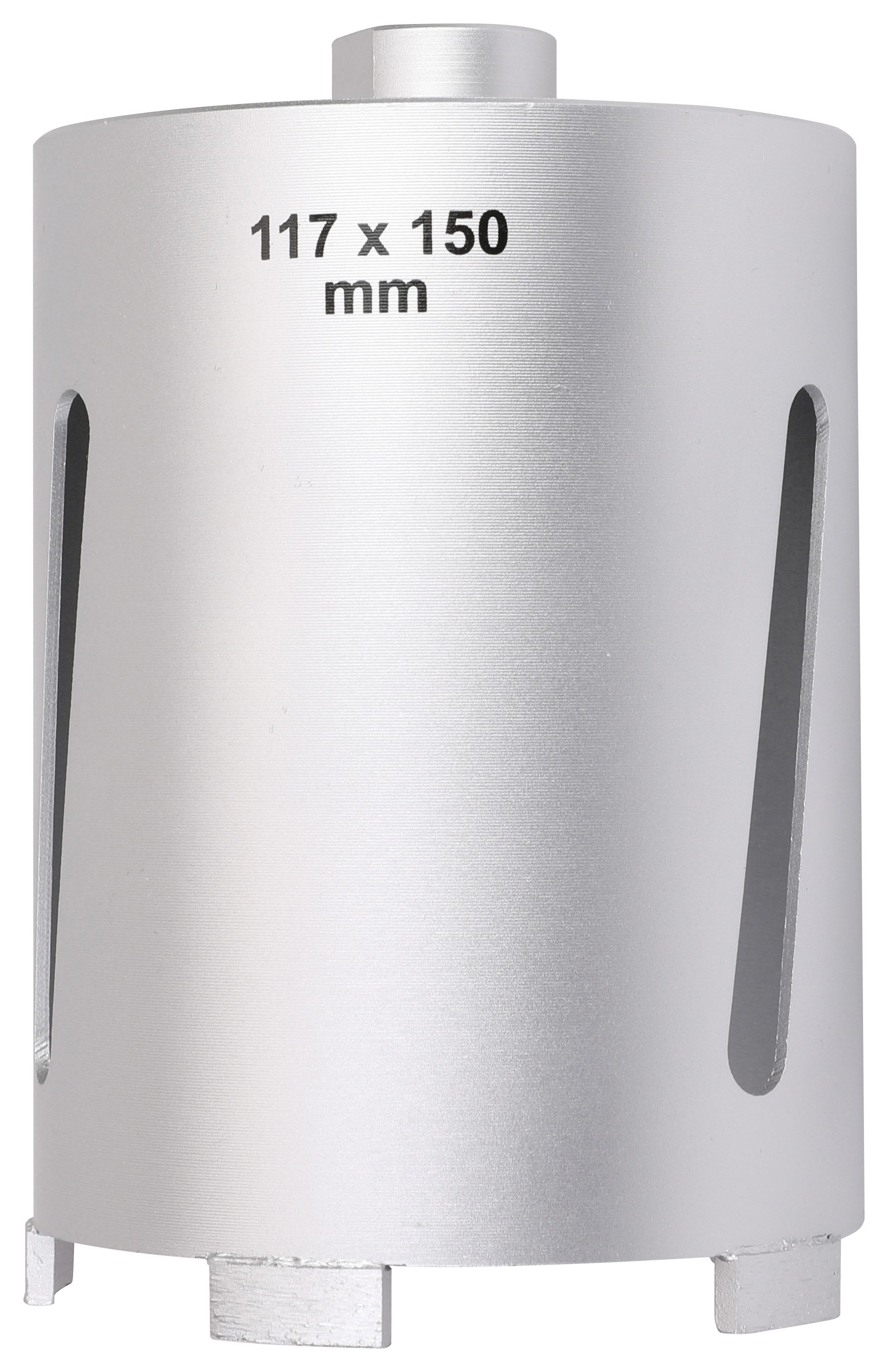 This Wickes 117mmØ x 150mm length diamond core drill bit is a professional quality core bit with sintered diamond cutting edges for cutting through masonry and brick and features large vents for fast waste removal and a longer lasting life span.