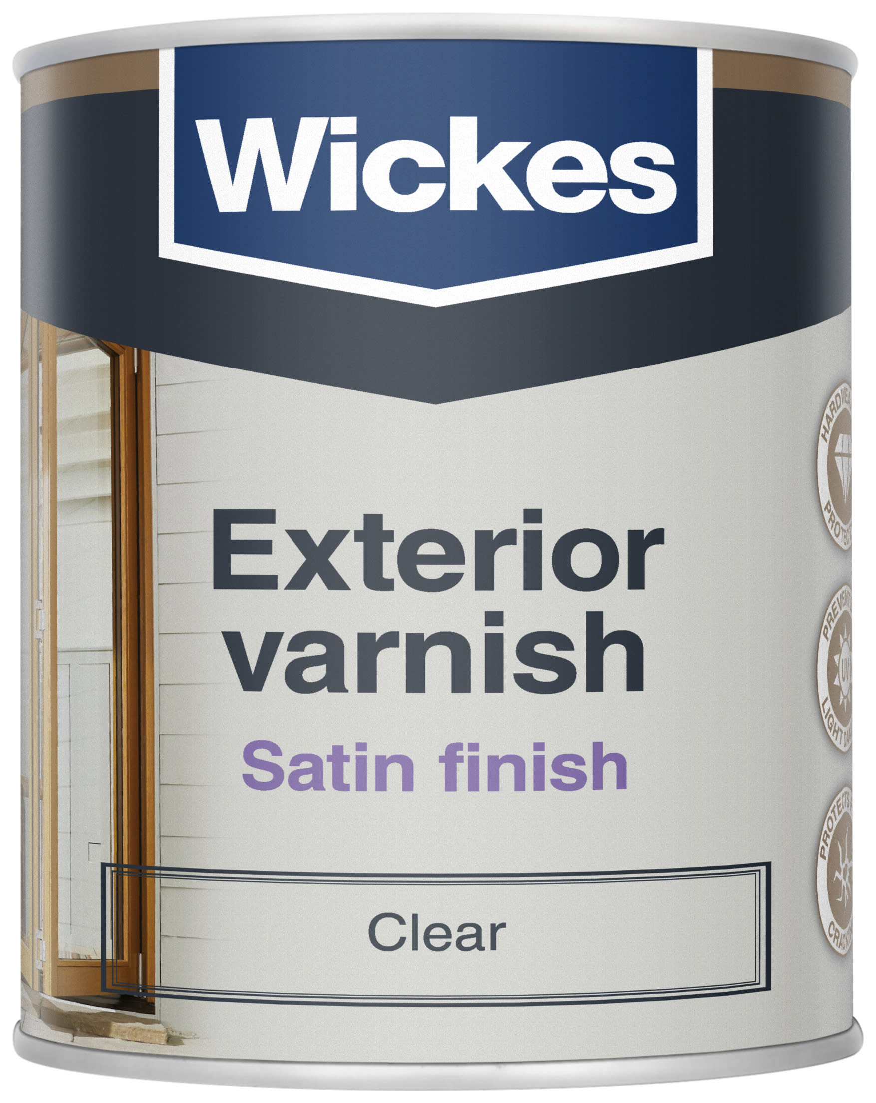 The Wickes Exterior Varnish offers a clear satin finish that provides high performance protection against UV light and water penetration. This flexible formulation will stretch and shrink with the timber so that it does not crack or flake, giving continuous all weather protection.