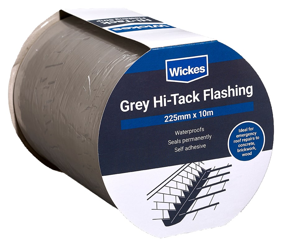 The Wickes Grey Self Adhesive Hi-Tack Flashing Strip is easy to use and ideal for those emergency roofing repairs. Bonds instantly to a wide range of building materials like concrete, polycarbonate, wood and brickwork. Its Ideal for repairs to lead flashing, valley gutters and roofing felt joints on flat roofs. For best results use flashing primer before use especially when using against porous surfaces.