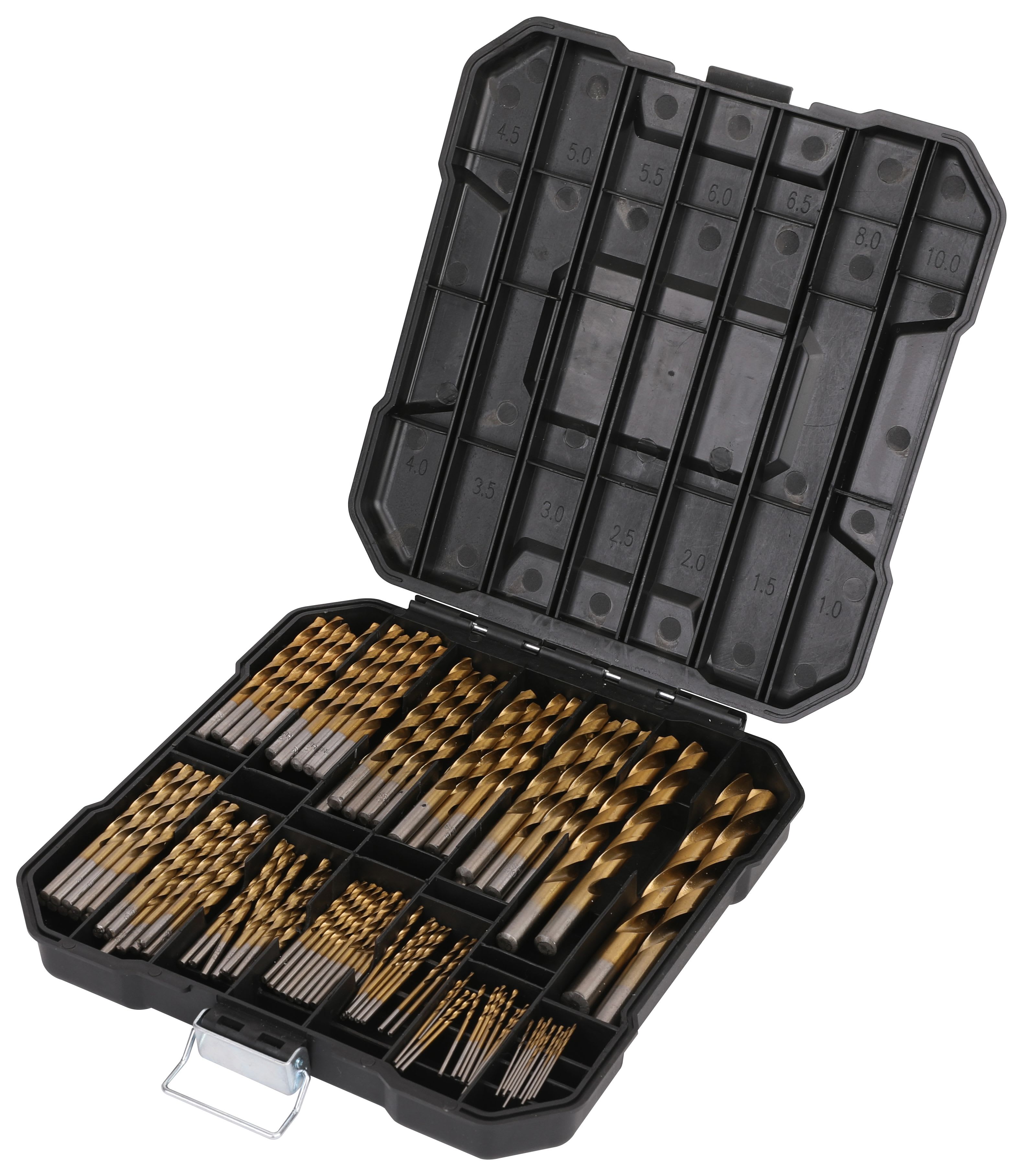This Wickes HSS 100 piece twist drill bit set 1.5 - 10mmØ is well organized with all sizes indexed on the tray to keep all bits in their correct place and a cushion between the upper and lower halves. For use on ferrous and non-ferrous metal, hardwood and softwood and some plastics.