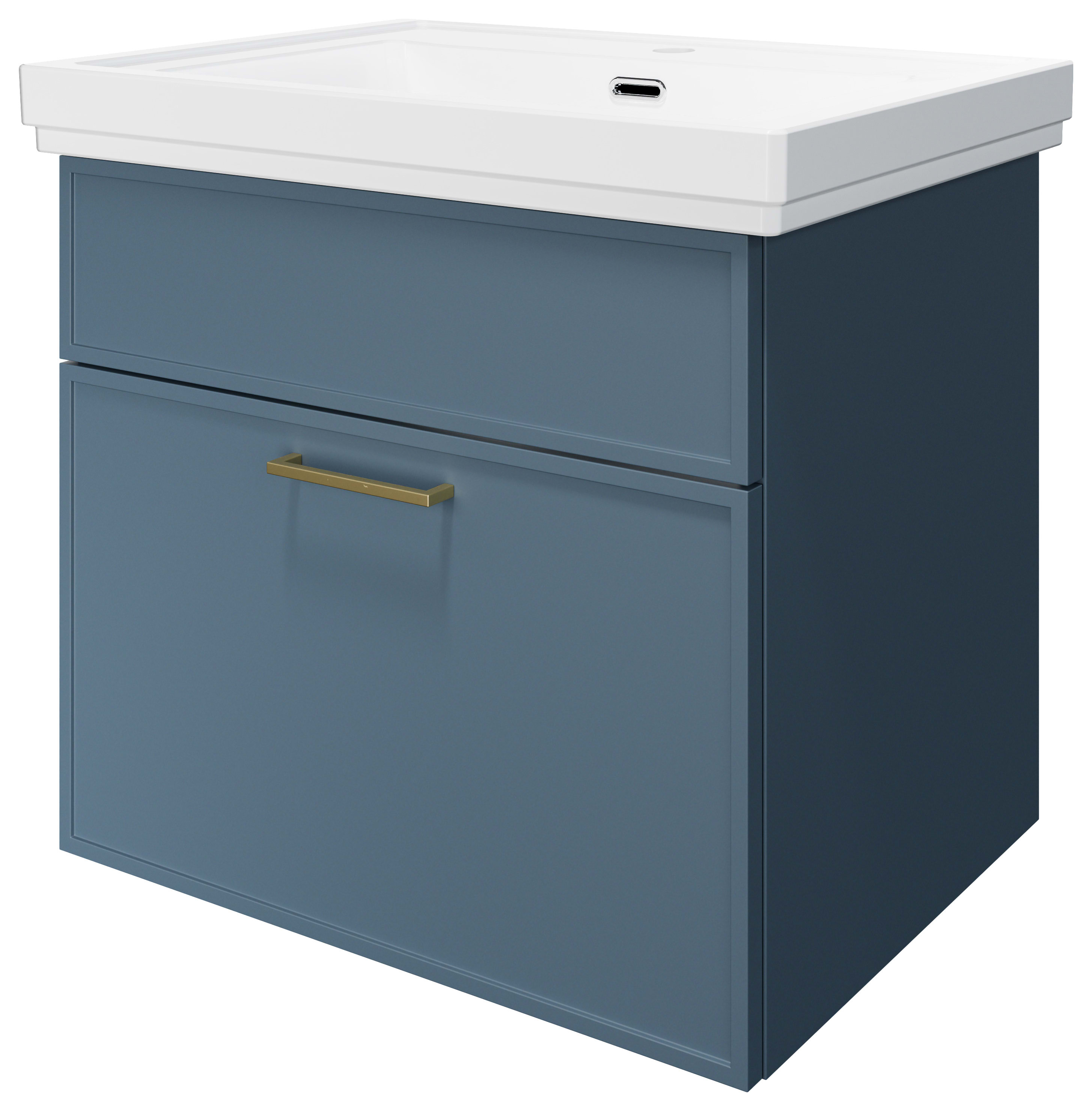 Wickes Haven Misty Blue Wall Hung Vanity Unit & Haven Basin - 579 x 600mm