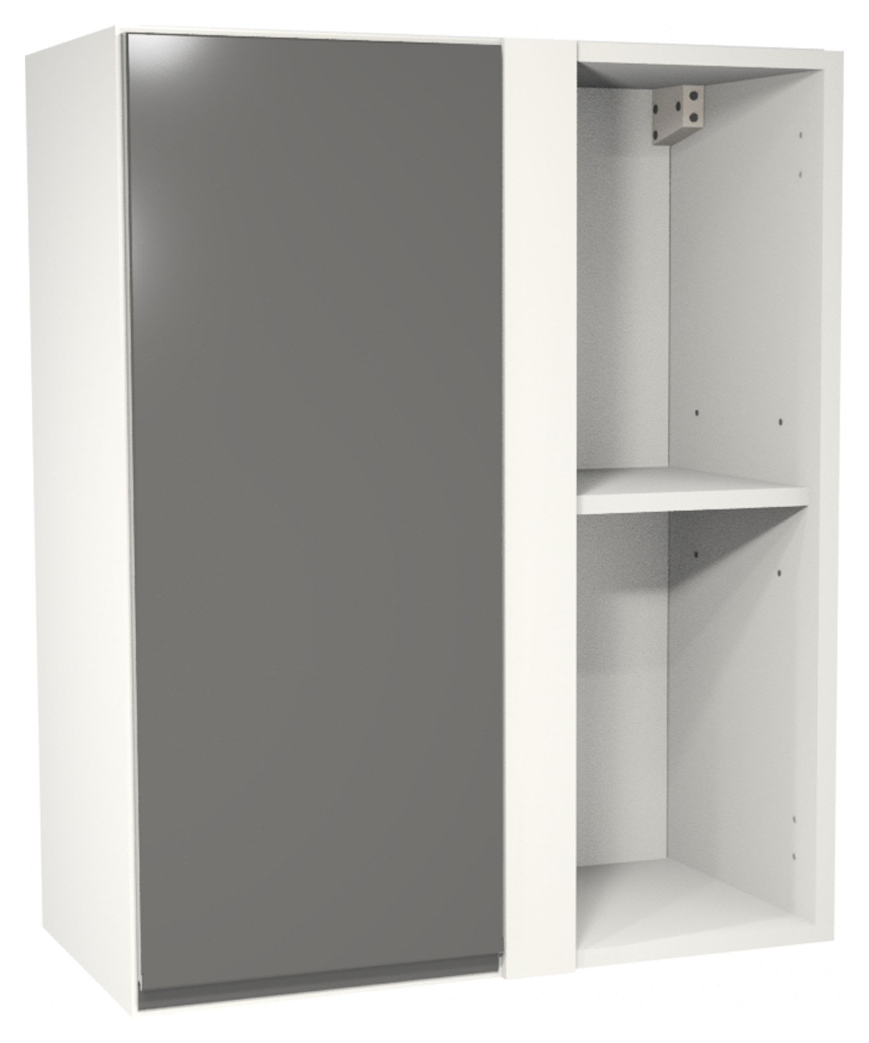 Wickes Madison Dark Grey Gloss Corner Wall Unit boasts a striking dark grey gloss finish and a seamless, handle-less design that embodies contemporary elegance. It not only enhances the aesthetic appeal of your kitchen but also maximises storage efficiency with its spacious interior. This unit is supplied with all of the fixtures and fittings required for a straight forward installation. Our 'Wickes Lifestyle Kitchens' range of flat-pack kitchens are available for you to assemble and fit whenever suits you.