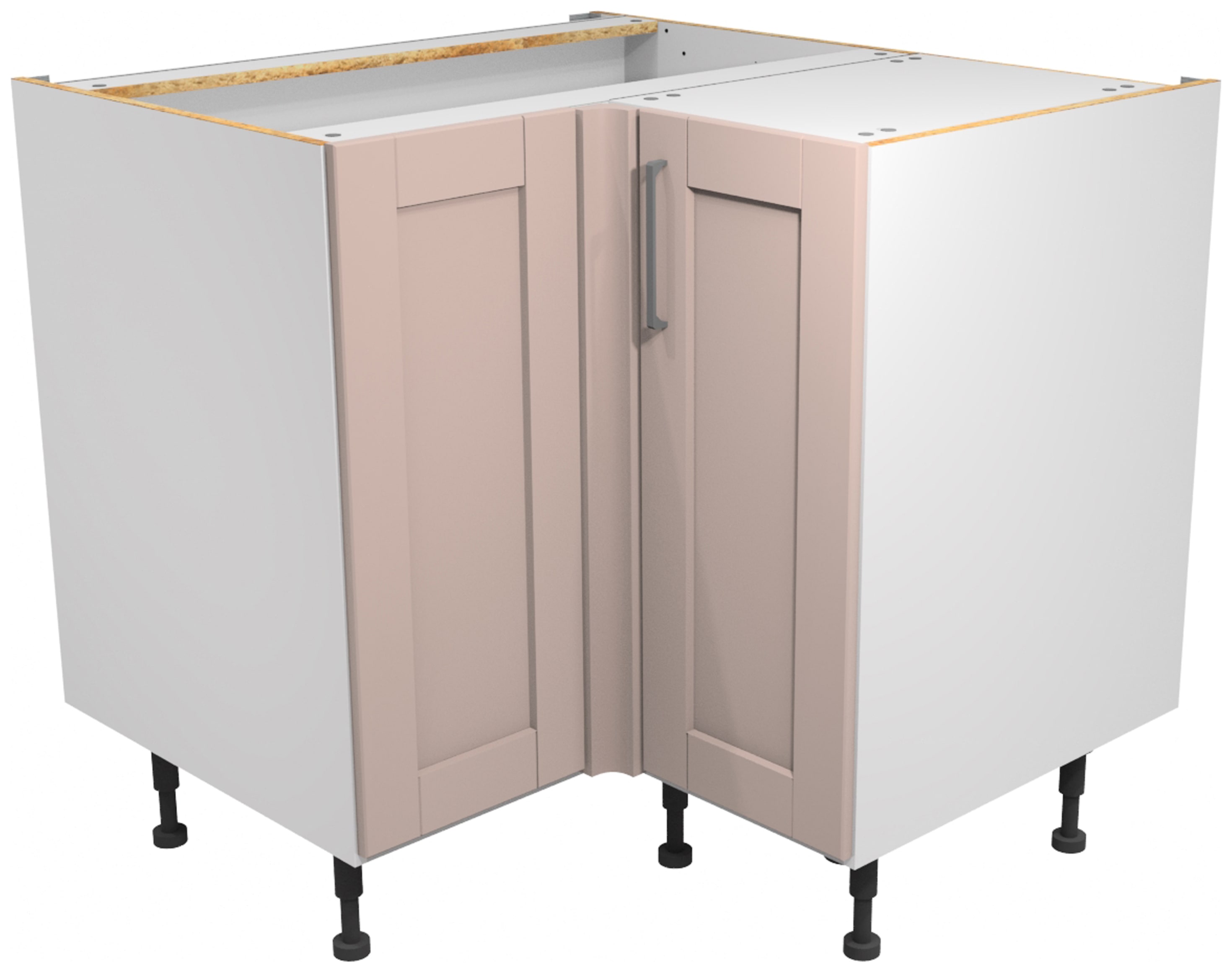 Wickes Ohio Dusky Pink Shaker Corner Base Unit offers a stylish and practical solution for optimising corner spaces in your kitchen, all presented in a refreshing Dusky Pink finish. This unit comes supplied with all fixtures and fittings, plus adjustable legs for uneven floor surfaces. Our 'Wickes Lifestyle Kitchens' range of flat-pack kitchens are available for you to assemble and fit whenever suits you.